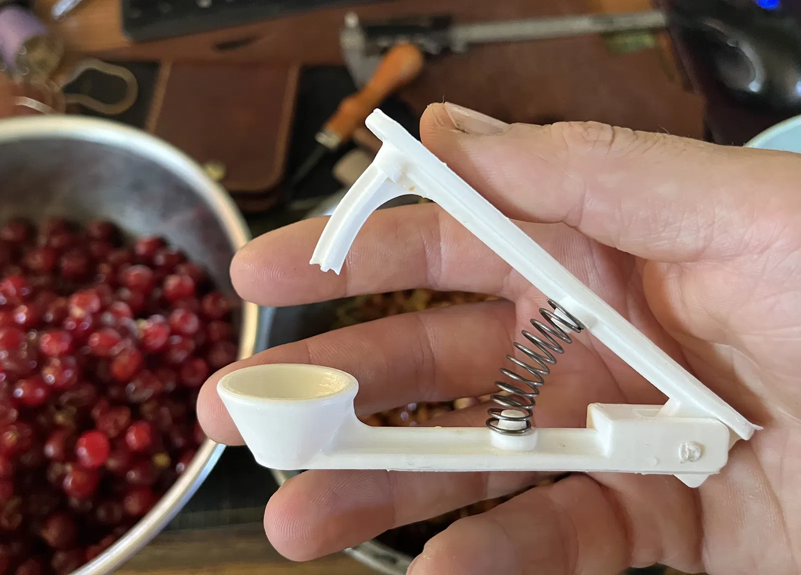 Đây là dụng cụ tách hột cherry loại nhỏ gọn, có lò xo, phiên bản v2 đã được cải tiến để xử lý cả cherry lớn hơn. Hướng dẫn chi tiết phần cứng, lò xo và cách làm bản lề bằng filament.