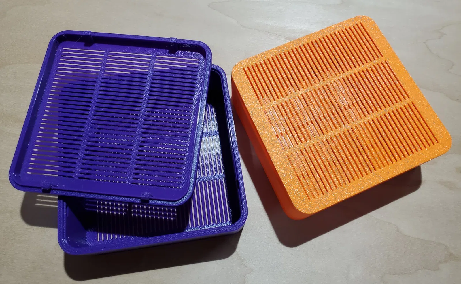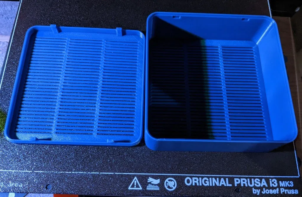 Hộp cơ bản để đựng chất hút ẩm. Khớp gài lại với nhau. In bằng PETG, bạn phải có máy in cho phép PETG dễ dàng bong ra khỏi bàn in khi nguội. Nếu PETG bám dính chặt, nó sẽ làm gãy các khe khi bạn cố gắng kéo nó ra khỏi bàn.