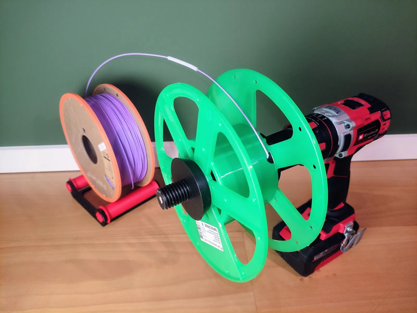 Dạo gần đây tui có nhu cầu respool lại cuộn dây tóc (filament) vì cái cuộn cũ không tương thích với Bambu Lab AMS. Mấy cái mẫu có sẵn trên mạng thì cần thêm mấy món đồ lặt vặt nữa, mà tui lười kiếm quá nên tự chế ra cái mẫu này luôn. Nó chỉ cần 2 bộ phận in ra thôi với một cây bút chì loại thông thường. Chỉ cần kẹp cuộn mới vô giữa hai bộ phận đó, rồi xỏ cây bút chì vô cái lỗ. Cây bút chì tui xài có đường kính khoảng 7mm (tính theo cạnh phẳng). Cái này có vẻ là size phổ biến, ít nhất là ở châu Âu chỗ tui. Sau đó, gắn cây bút chì vô máy khoan điện rồi đặt cuộn dây cũ lên giá đỡ dây. Rồi cứ việc bật máy khoan lên và bắt đầu respool thôi. Lúc respool, nhớ dùng một đoạn ống PTFE nhỏ để dẫn dây nha. Mấy vòng dây nhìn không được đẹp lắm nhưng mà chắc chắn là hoạt động tốt nếu bạn chỉ thỉnh thoảng có nhu cầu respool dây thôi.