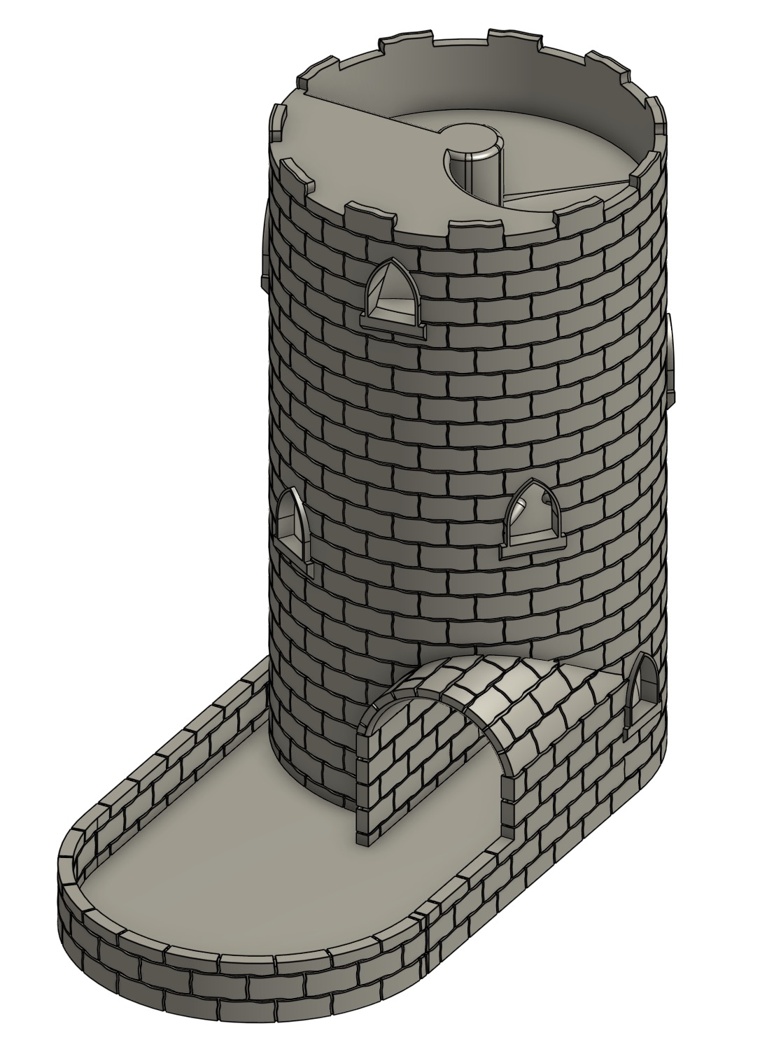 Tháp xúc xắc này có thể in mà không cần hoặc chỉ cần ít vật liệu hỗ trợ. Kích thước in được khuyến nghị là 135%.