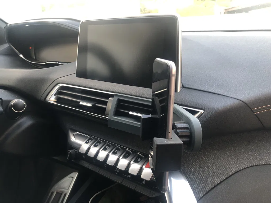 Giá đỡ điện thoại chuyên dụng cho xe PEUGEOT 3008, gắn tiện lợi vào cửa gió điều hòa bên phải. Phiên bản PCH_Holder_V2 cải tiến với thanh gia cố dọc, đảm bảo sự chắc chắn. In bằng PRUSA PETG với độ phân giải 0.2mm và infill 30% cho hiệu suất tối ưu.