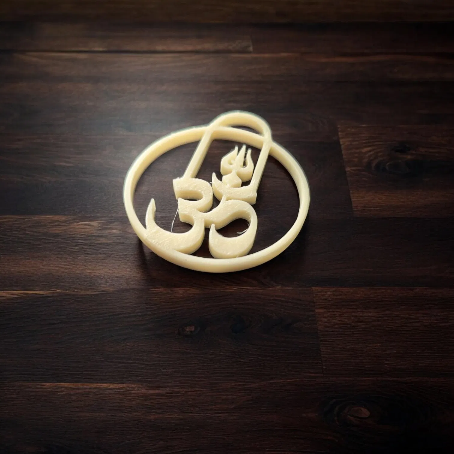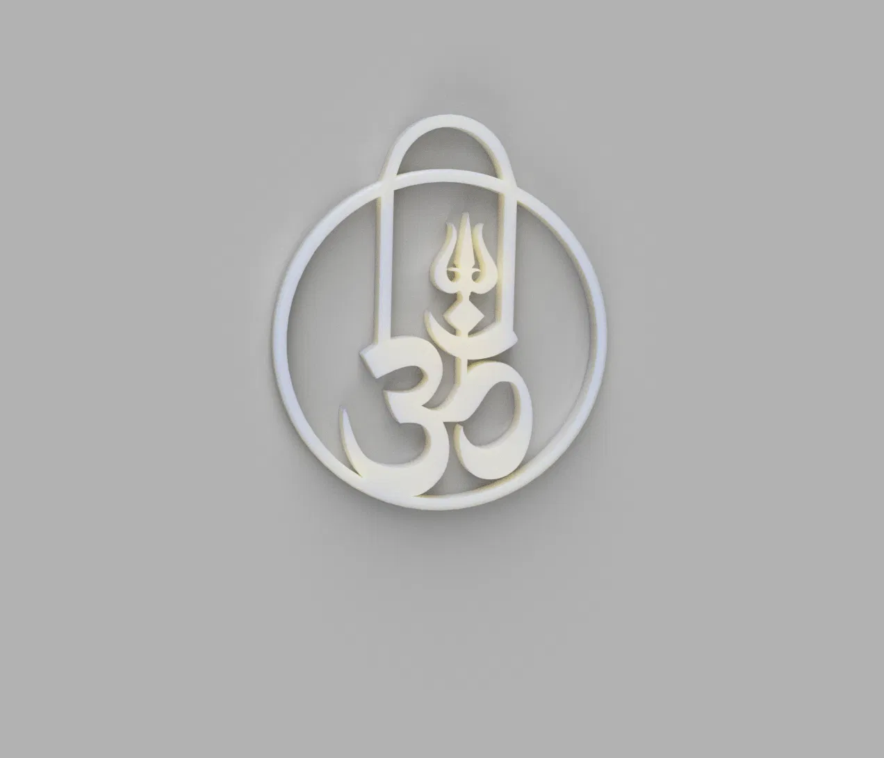 Mô hình in 3D biểu tượng Om (ॐ) kết hợp với Trishul (chĩa ba) và Lingam, được thiết kế tỉ mỉ bằng Fusion 360, mang đậm ý nghĩa tâm linh Hindu, tạo nên một sản phẩm trang nhã và ý nghĩa.