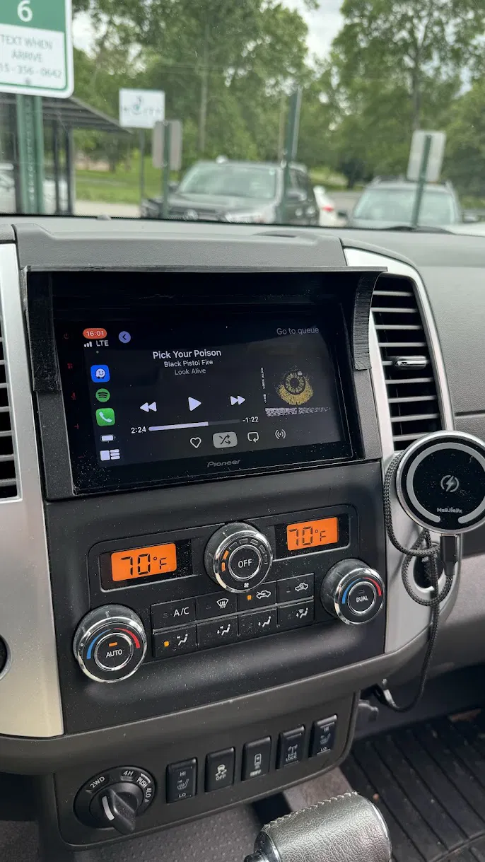 Chán cảnh nắng gắt chiếu vào màn hình Radio xe Nissan Frontier, chủ nhân đã tự thiết kế và chế tạo một mui che. Sản phẩm này được gắn bằng băng keo 3M và đã chứng minh sự ổn định, không hề dịch chuyển trong suốt hơn 6 tháng sử dụng.