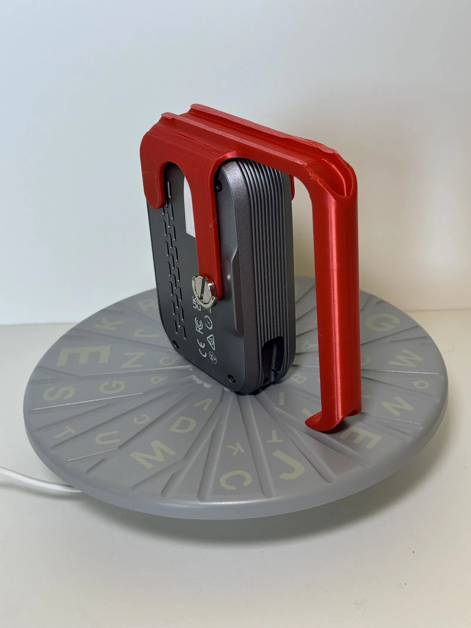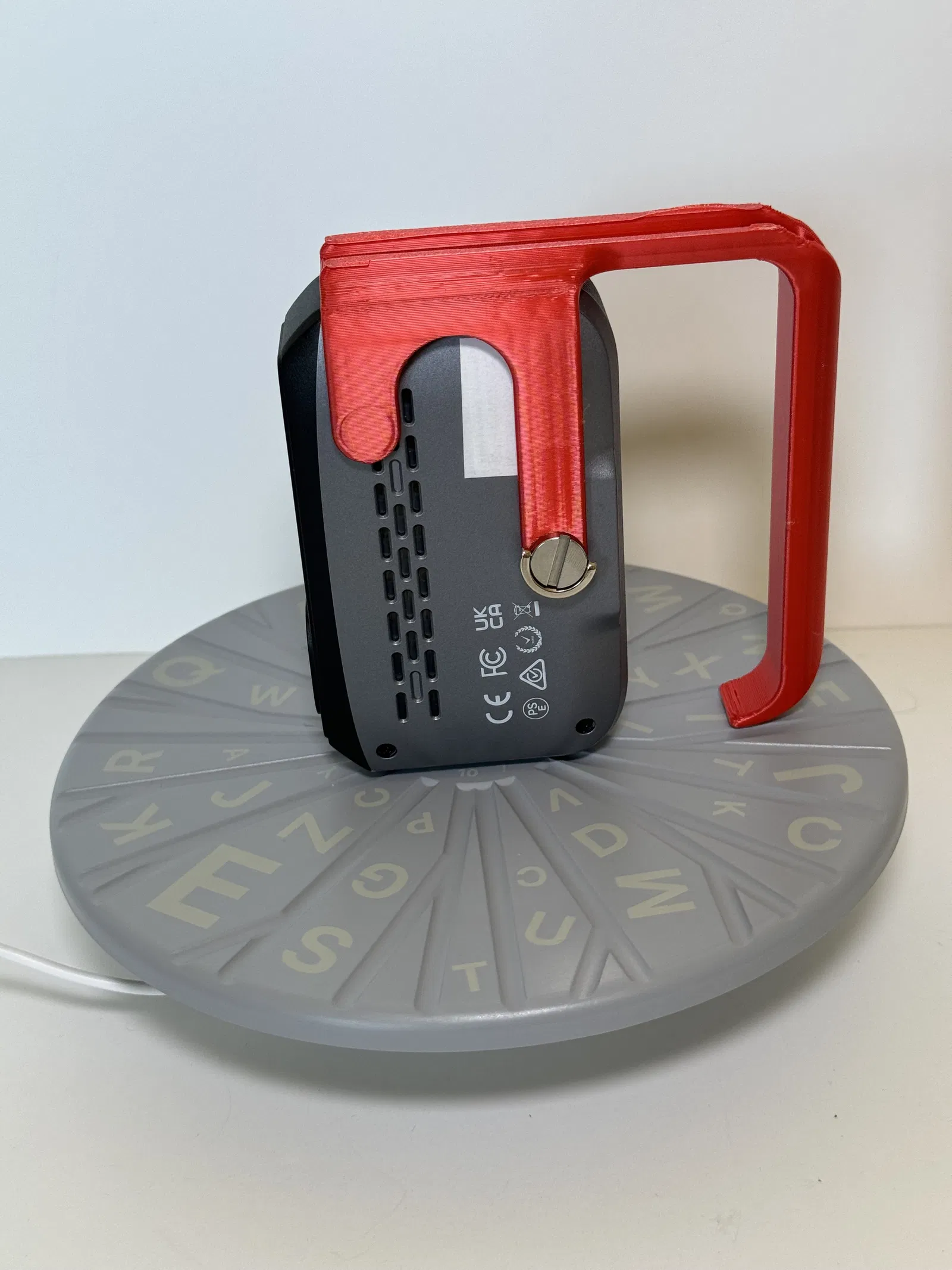 Tay cầm này được gắn vào đỉnh máy quét bằng Vít cố định máy ảnh có bản lề D-Ring đi kèm với máy quét của bạn. Phiên bản 2 bổ sung các gân để cải thiện độ cứng và giảm sự uốn cong.