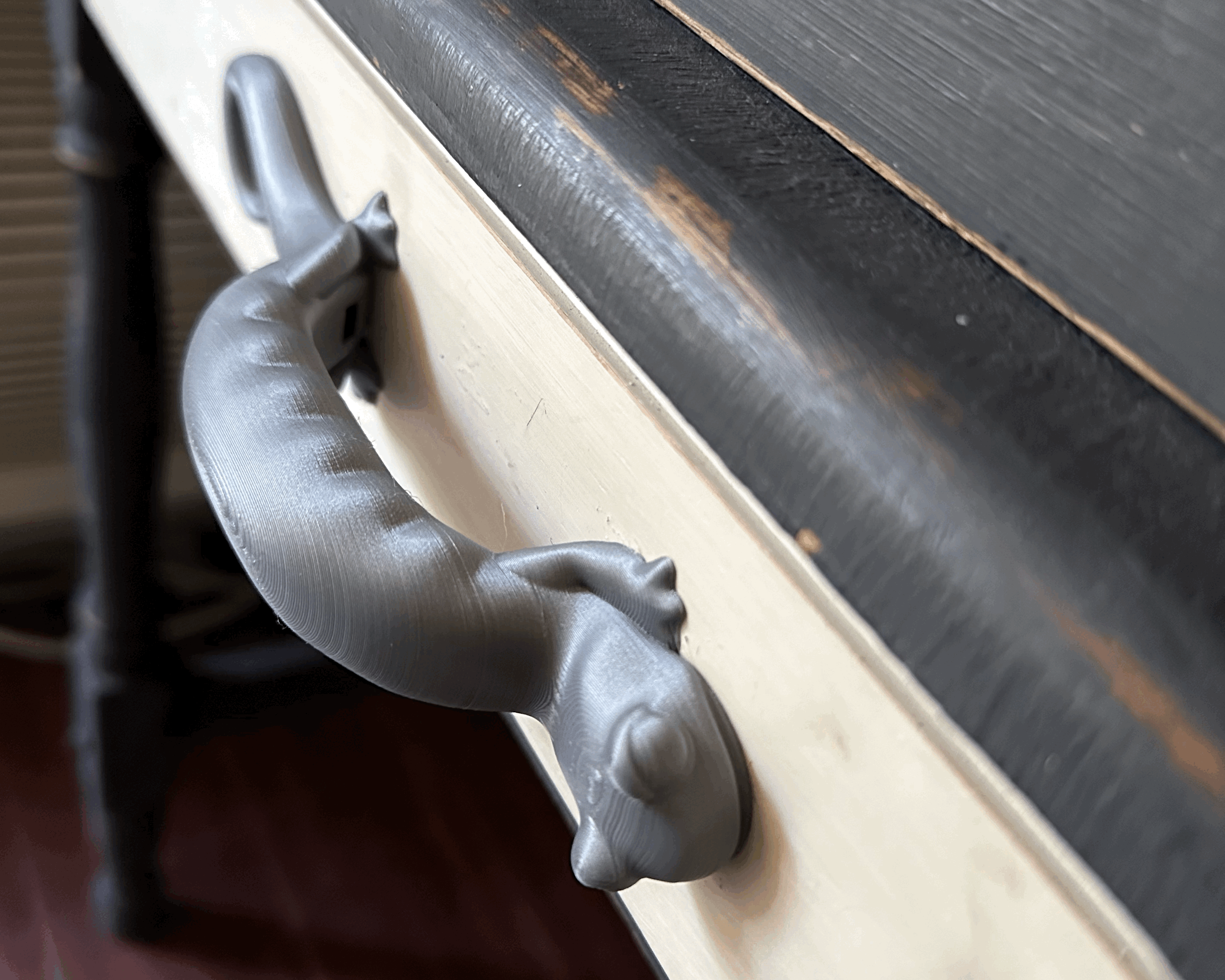 Nâng cấp nội thất của bạn với tay nắm ngăn kéo hình kỳ nhông dễ thương này! Hoàn hảo để sửa chữa đồ nội thất hoặc thêm nét độc đáo cho các dự án tùy chỉnh của bạn. In với PLA và chiều cao lớp 0.16mm để có kết quả tốt nhất.