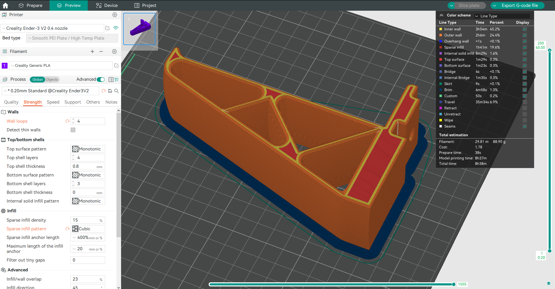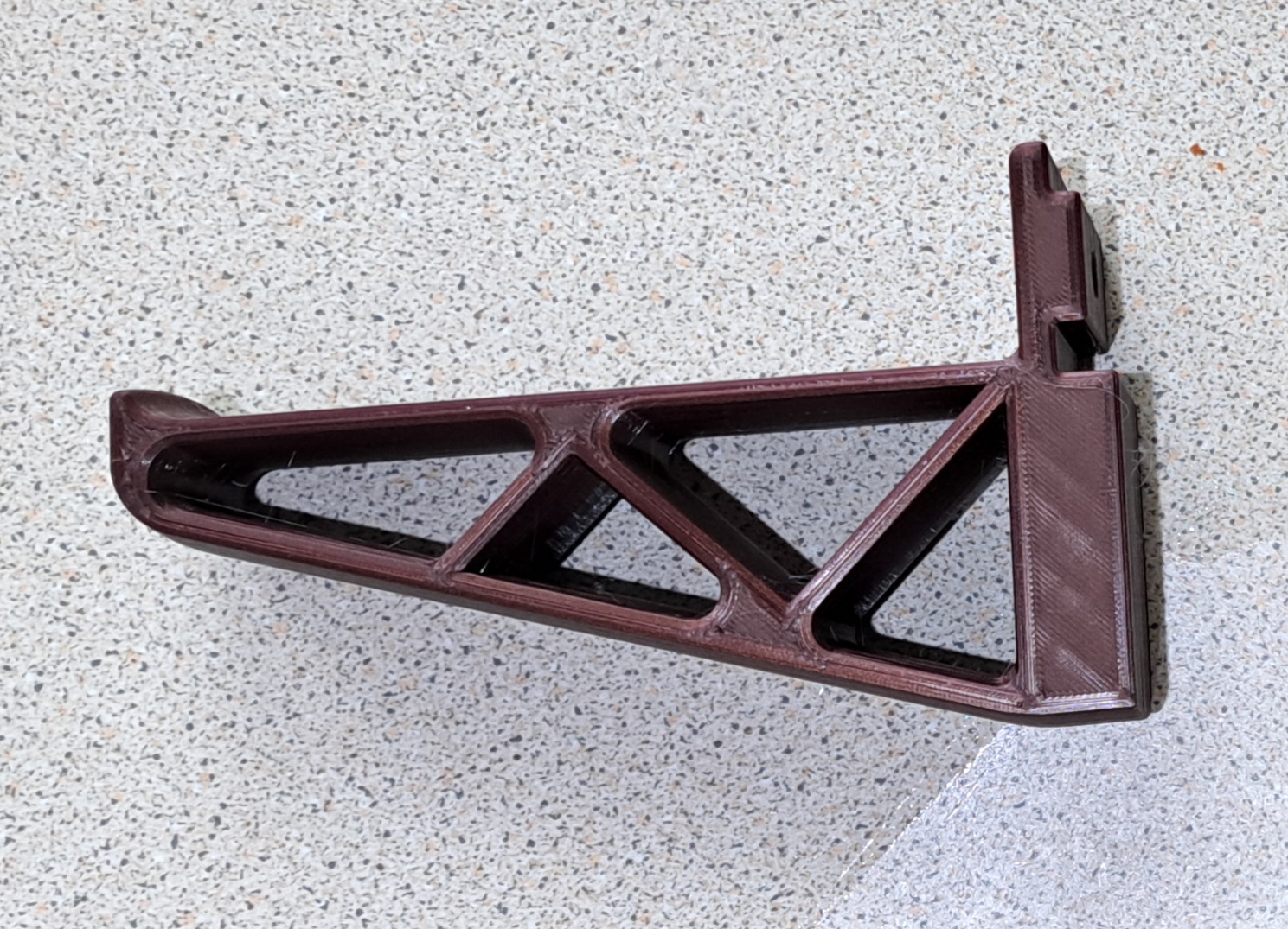 Hai cái bracket đa năng này còn có thêm một cái gân chạy dọc giữa đáy của bộ phận, tạo thêm một vòng tường bên trong. Cái này mấy anh em coi trong phần mềm slicing là thấy à. Nó làm tăng thời gian in lên, nhưng tui nghĩ là đáng giá vì nó chắc chắn hơn.
