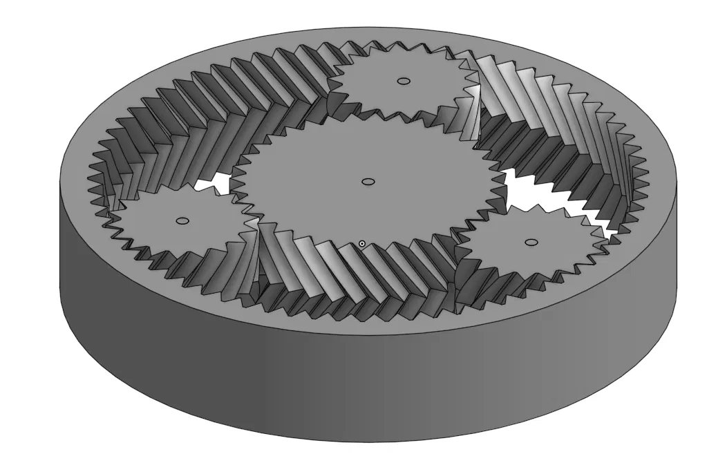 Thiết kế đầu tiên của tui với bánh răng xoắn kép. Nếu mấy cái khoảng hở bị chặt quá, anh em cân nhắc in cái mô hình này lớn hơn chút nha. Hộp số hành tinh này có thể dùng để stress test máy in của anh em đó.