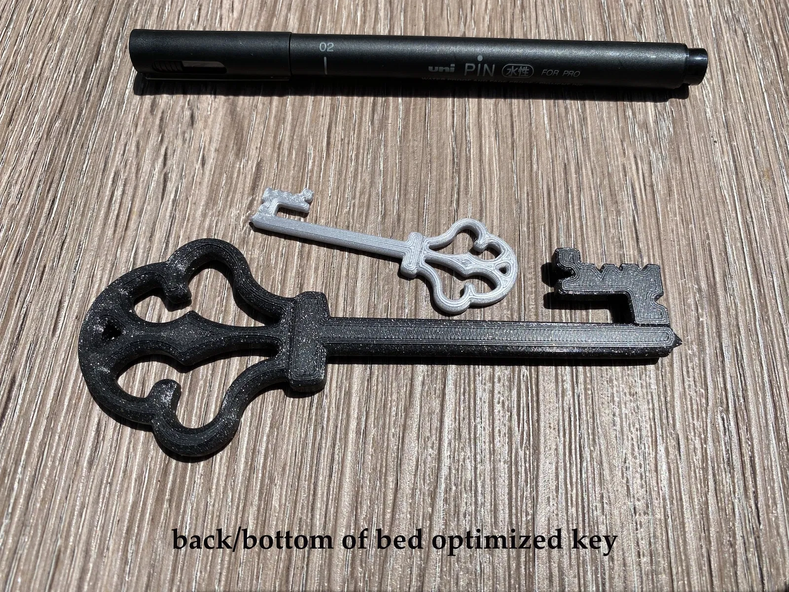Có ba phiên bản. Phiên bản chính được tối ưu hóa cho in FDM và in mà không cần hỗ trợ. Tôi cũng đã bao gồm một phiên bản không được tối ưu hóa nhưng đối xứng thay vì được thiết kế để in từ mặt bàn; phiên bản này có thể hữu ích hơn cho in resin hoặc các ứng dụng khác. Và tôi đã tách phiên bản thứ hai đó làm đôi để in thành hai phần có thể dán lại với nhau, bạn có thể thích tùy chọn này nếu bạn có kế hoạch xử lý hậu kỳ và sơn chìa khóa.
