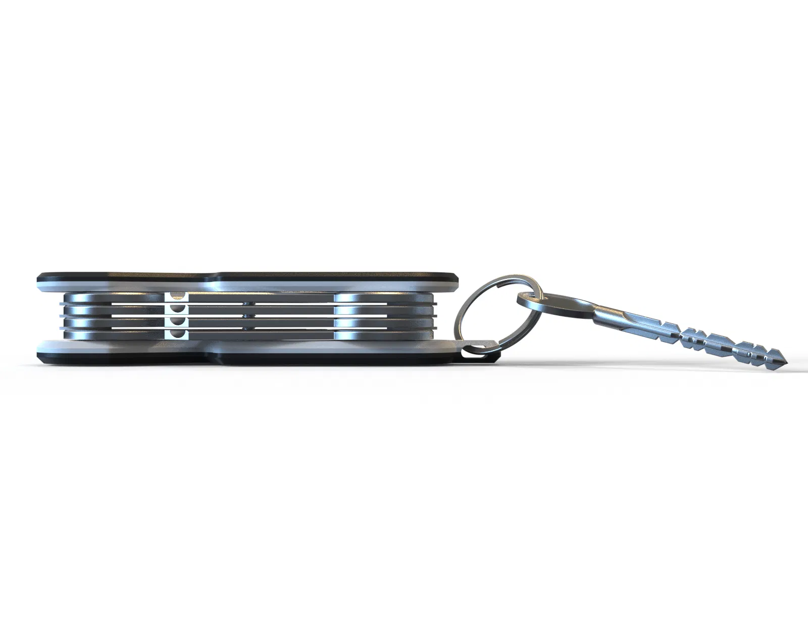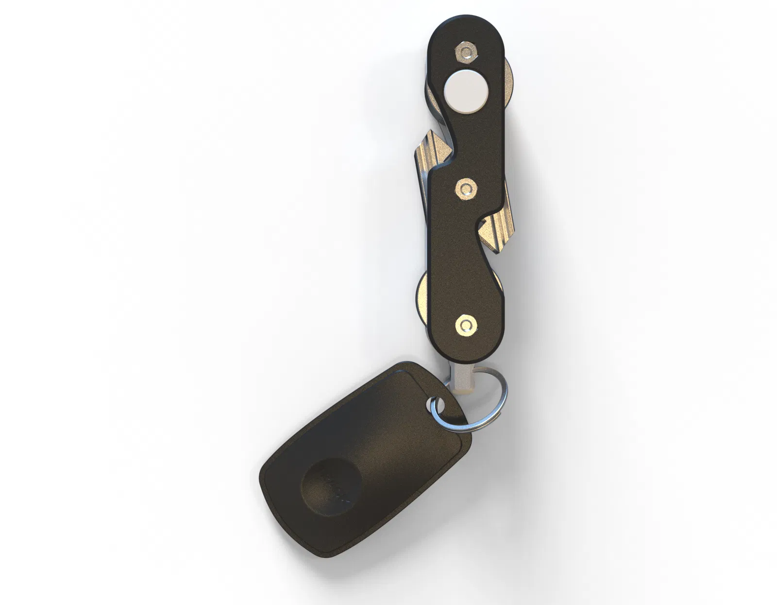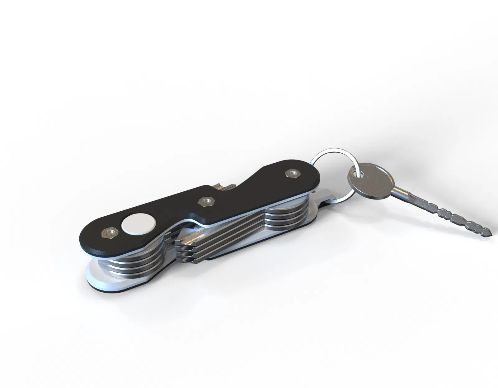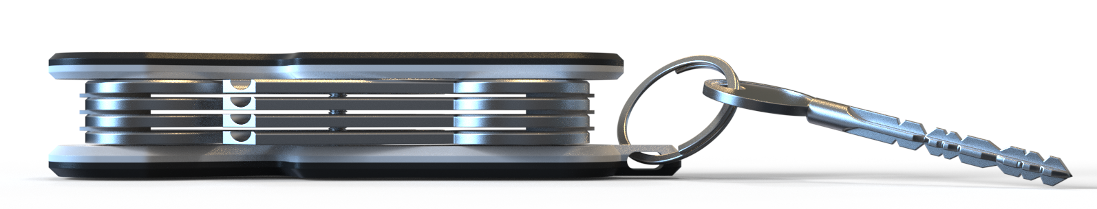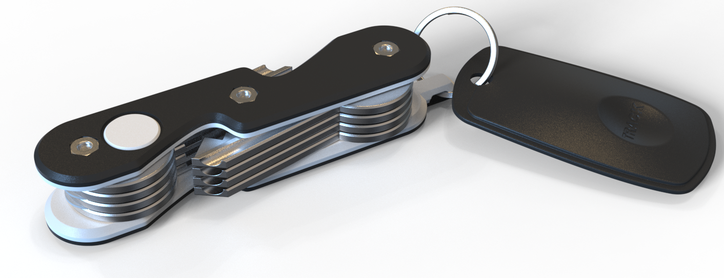 Đây là một cái móc chìa khóa rất gọn gàng, có thể dùng với chìa khóa dạng lưỡi (loại thông thường nhất) theo kiểu dao đa năng. Thêm vào đó, nó có một vòng tròn bên ngoài có thể dùng để treo các loại chìa khóa khác hoặc thậm chí là một thẻ theo dõi theo ý bạn. Và chắc chắn nó sẽ kết hợp ngon lành với của tui. Cứ coi cái này như một cái thẻ, nhưng có chìa khóa bên trong.