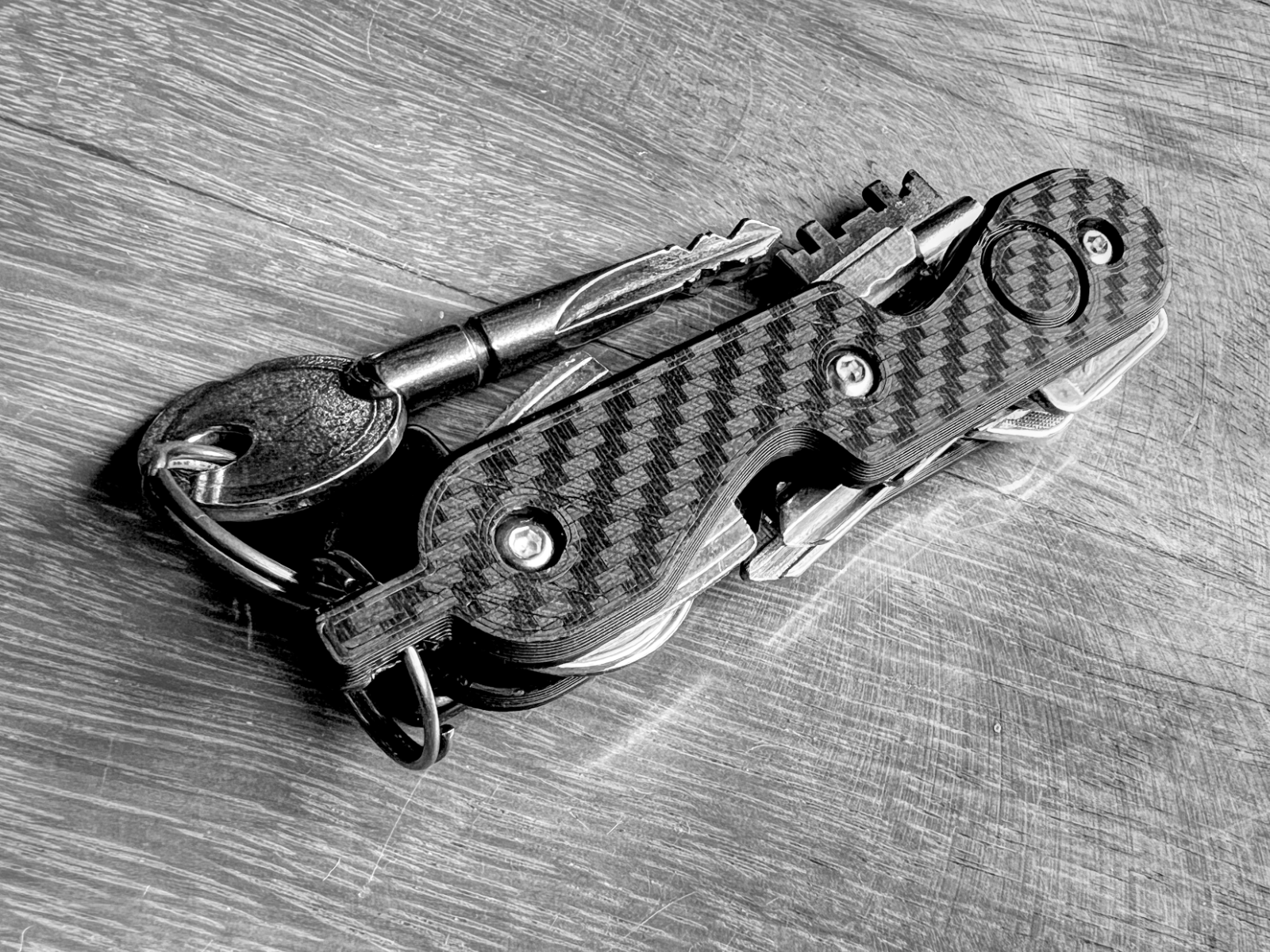 Giới thiệu móc khóa kiểu dao đa năng, một giải pháp nhỏ gọn cho chìa khóa của bạn. Có khe cắm thẻ theo dõi, nam châm tùy chọn và thiết kế tối ưu cho chìa khóa dạng lưỡi. Đạt được vân carbon fiber độc đáo với khay in đặc biệt. Vật liệu và hướng dẫn in chi tiết.