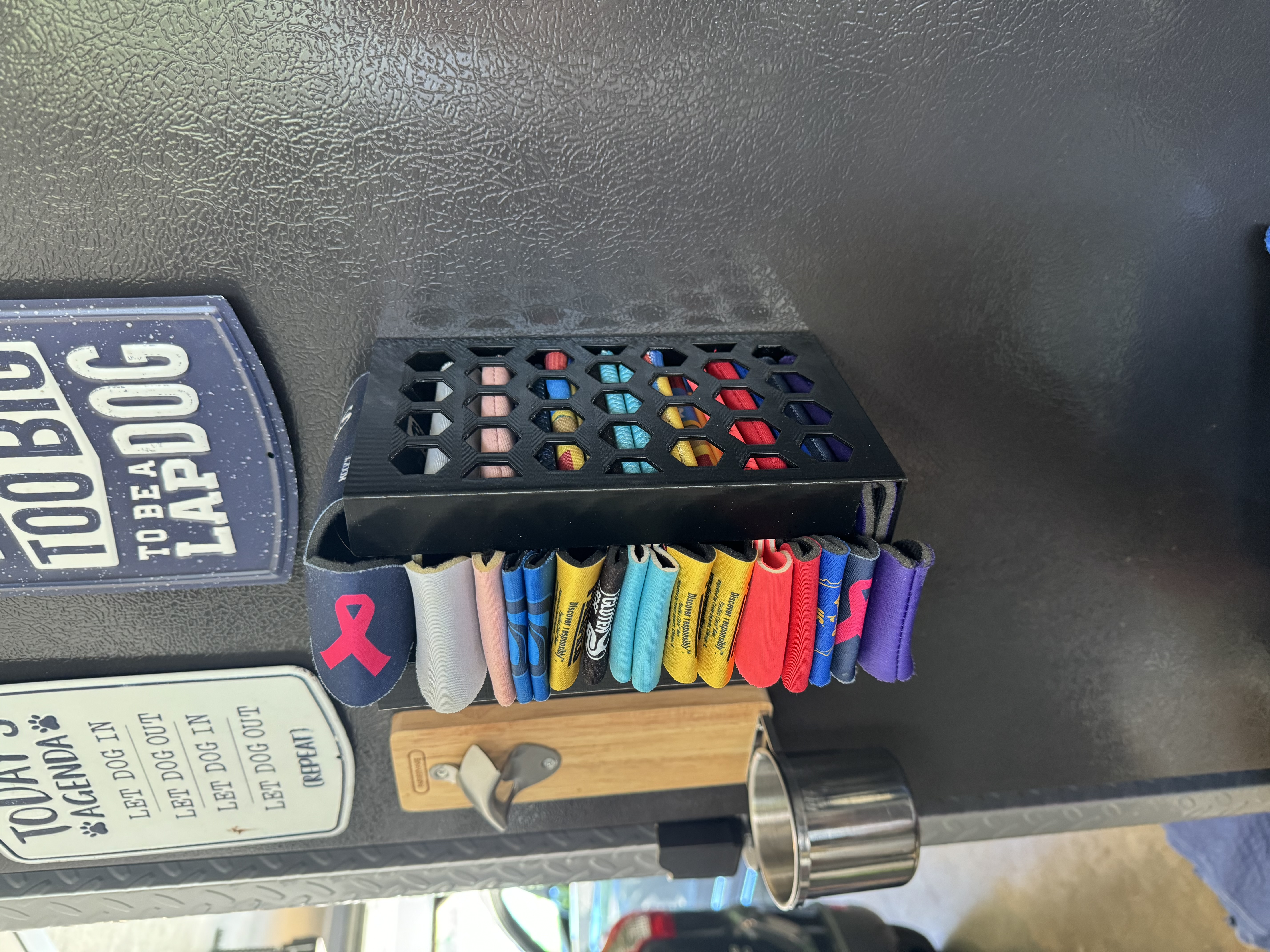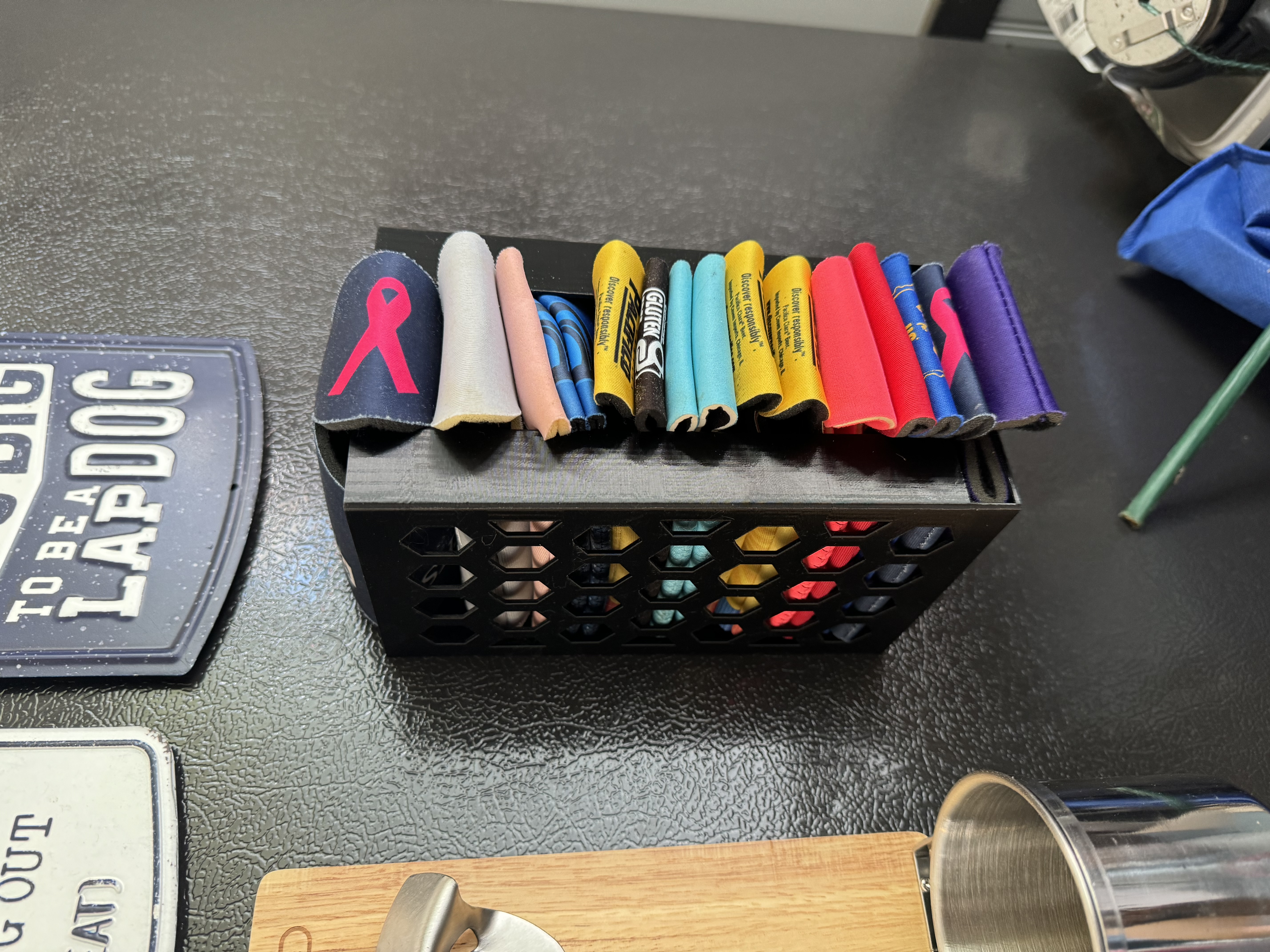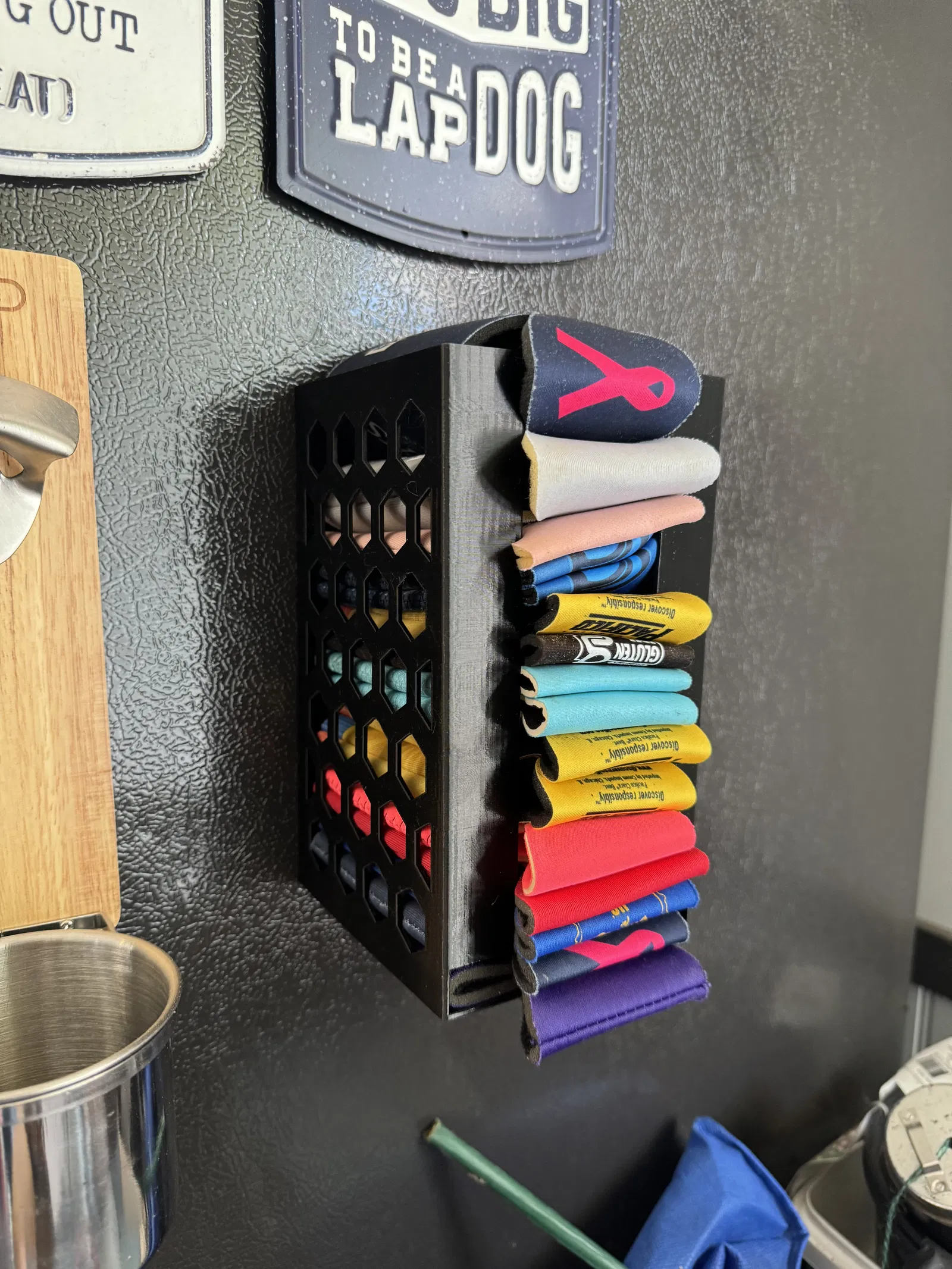 Giá đỡ ly bia dạng nam châm, có khoét lỗ hình lục giác độc đáo. Có thể gắn tủ lạnh bằng nam châm hoặc bắt vít. Có thể in bằng PLA hoặc PETG. Mẫu gốc từ Darren Henson.
