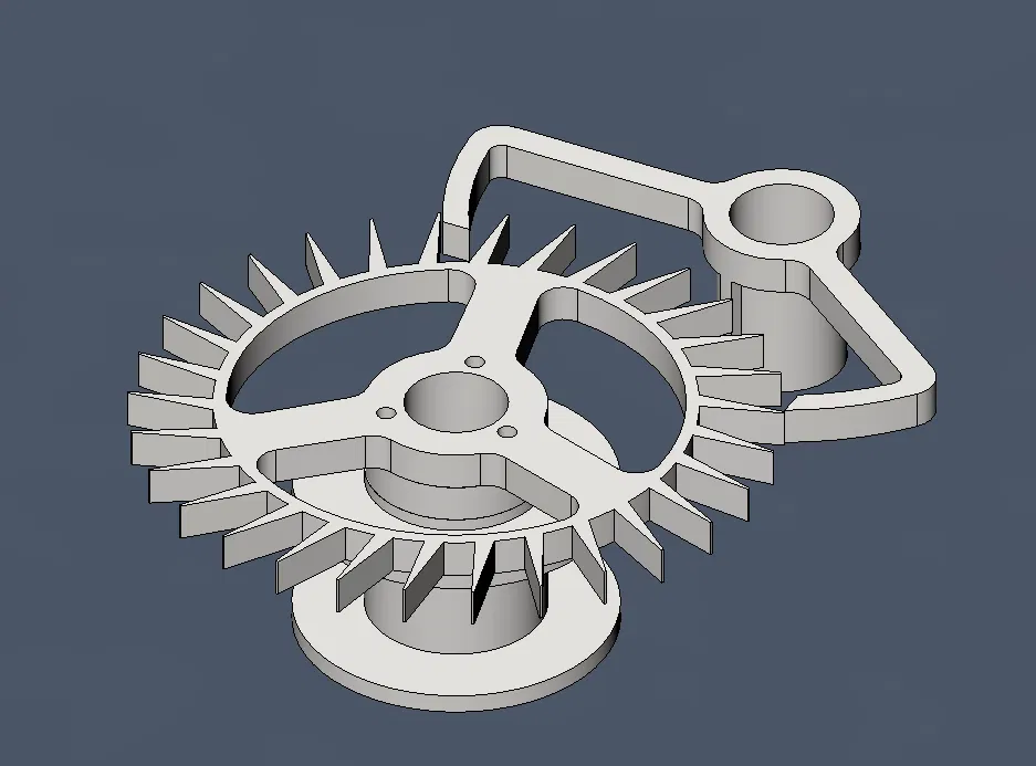 Đây là một dự án đang trong quá trình phát triển và thử nghiệm lặp đi lặp lại để cải tiến thiết kế, nhằm tạo ra một bộ hồi (escapement) hoạt động hoàn hảo.