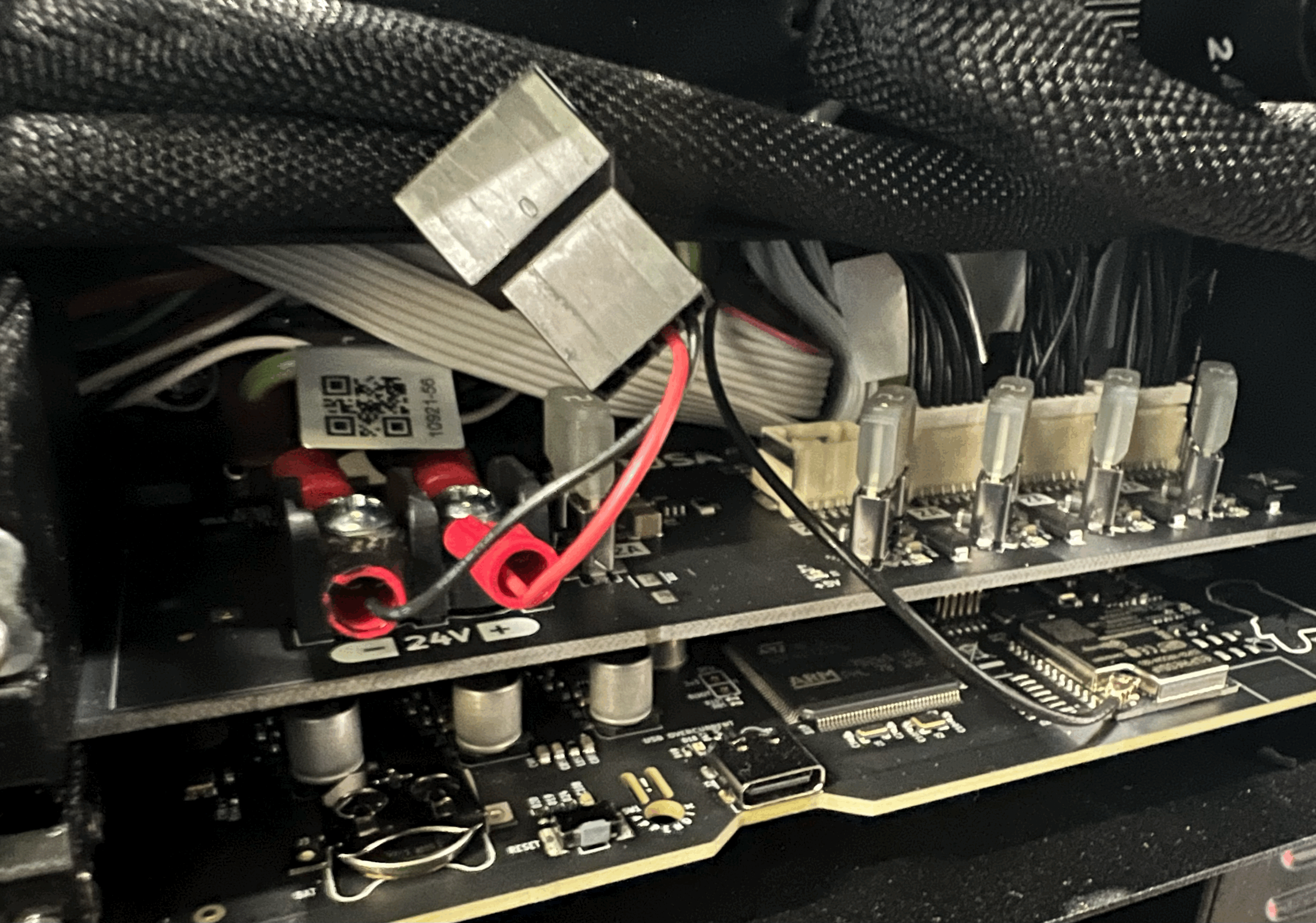 - Dịch chuyển cái đầu in đang nằm phía trên mấy con ốc giữ dây nguồn 24v ra, hoặc nếu bạn thấy tự tin thì tháo hẳn cái bo mạch ra để làm bước tiếp theo.