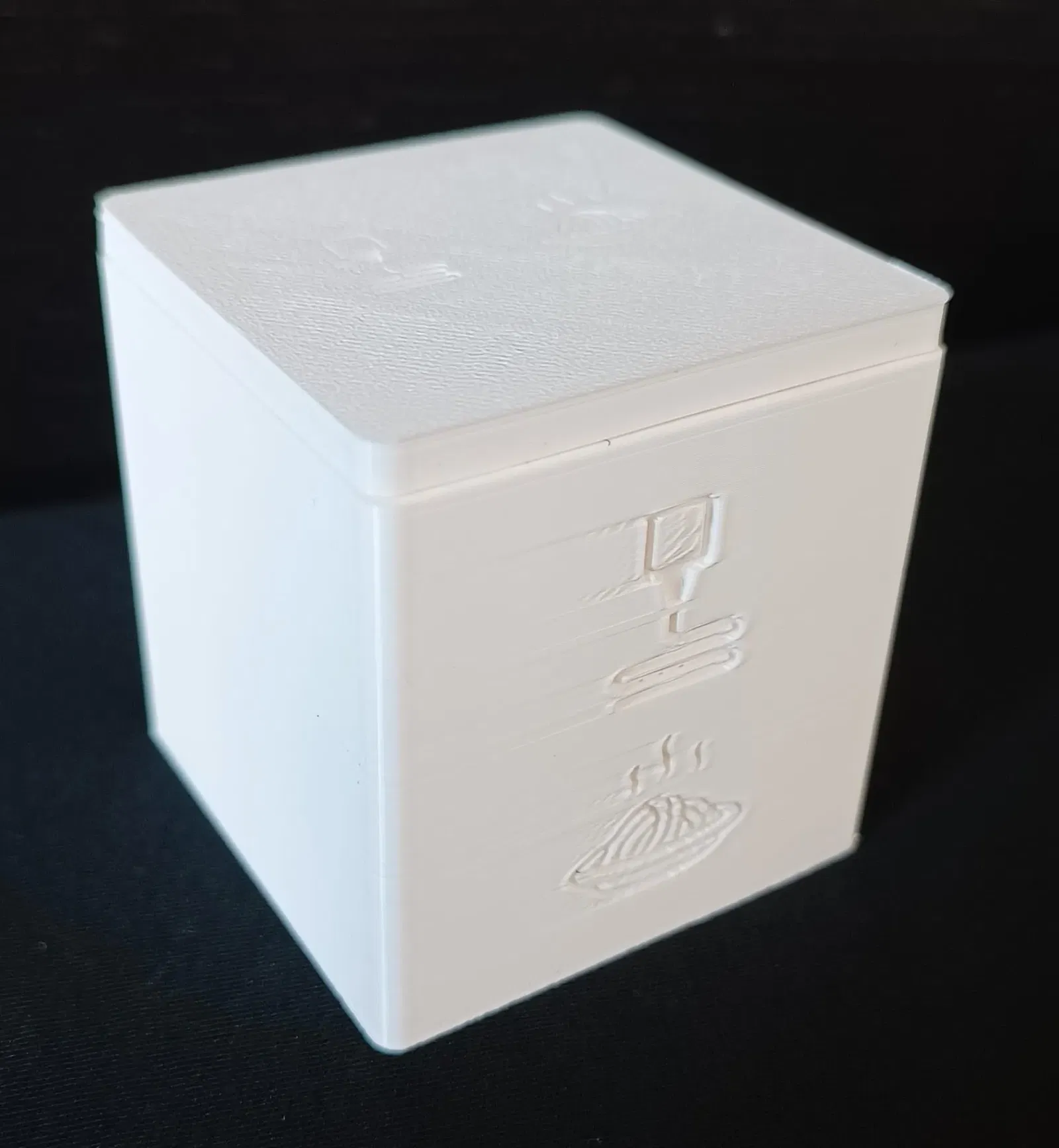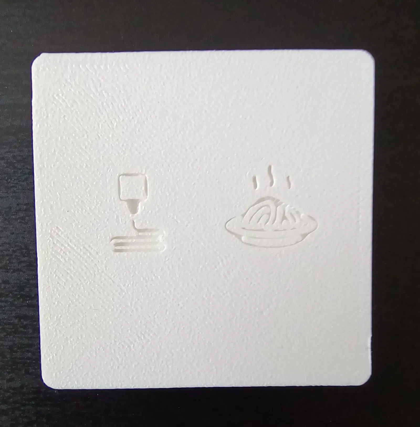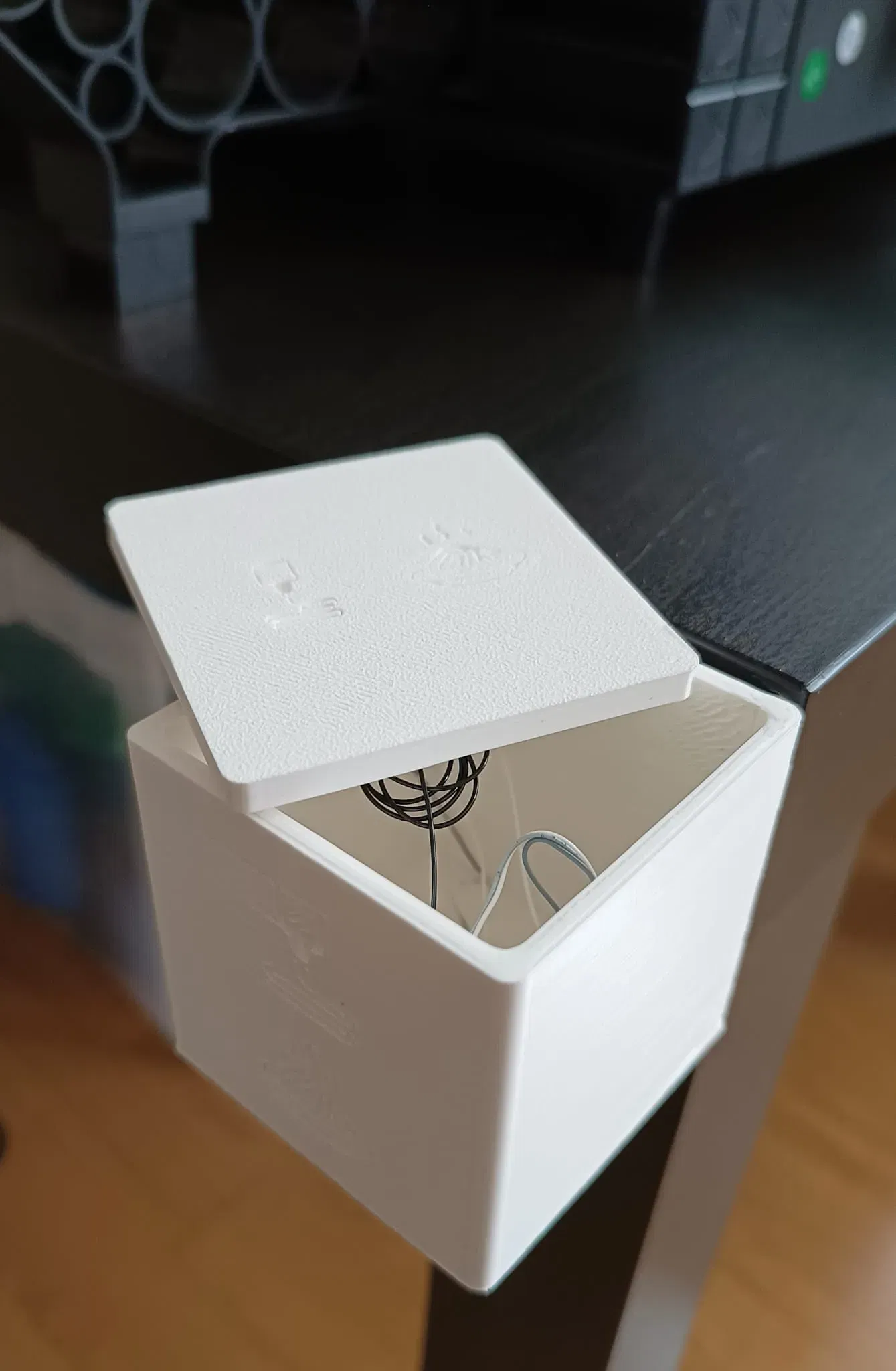 MÔ TẢ NGUYÊN MẪU - In bằng ecoPLA trắng trên Anycubic Kobra2 - Gắn bằng các dải Velcro vào bàn IKEA LACK, ngay bên cạnh máy in - Một số hiện tượng ghosting, ý kiến đóng góp rất được hoan nghênh. (Tôi rất mới với điều này)