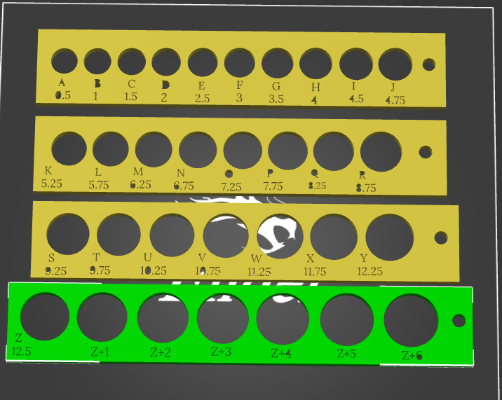 Làm cái này để giúp tui làm mấy cái mẫu nhẫn cho đúng cỡ trước khi in. Có thể dùng như một cái thước đo kỹ thuật số, đặt lên lỗ nhẫn để tìm xem nhẫn sẽ vừa cỡ nào, hoặc scale cho đến khi vừa với cỡ bạn cần.