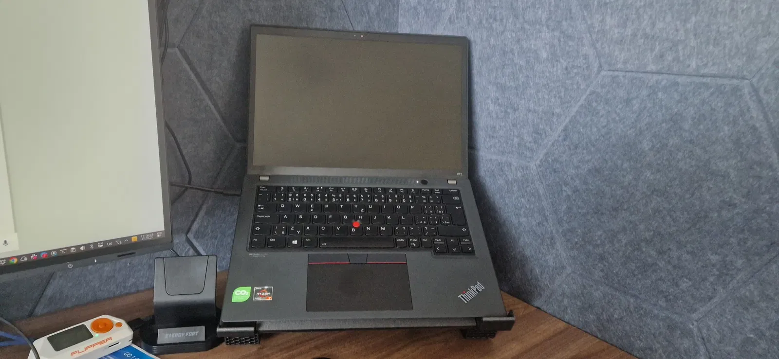 Gian hàng này được tạo ra cho các mẫu hình lục giác Lenovo ThinkPad X13 để tiết kiệm dây tóc, có những lỗ nhỏ cho các feet sổ ghi chép, để mở rộng các thanh ngang phải phù hợp với các tư tưởng lớn hơn như hàng T.