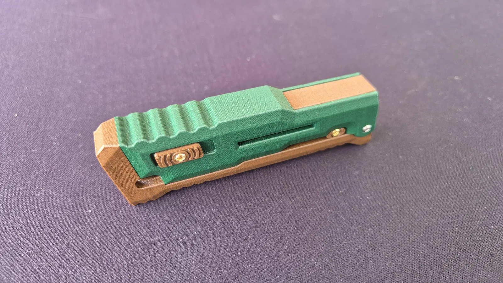 Dao tiện ích trọng lực GUN V1.1, lấy cảm hứng từ Reate Exo-U. Phiên bản V1.1 có thêm bộ phận che và giữ lưỡi dao. Hỗ trợ in cho ren cấy nhiệt M2 hoặc đai ốc M2, không cần support. Khuyến nghị in bằng vật liệu bền như PETG-CF. Bao gồm file STEP để tùy chỉnh.