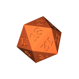 Lý do tui sẽ không bao giờ cho phép người chơi nào mang con d20 in 3D vô mấy vụ chơi của tui đâu! Dễ bịp lắm nếu tự in mà. Nhưng mà, xài thay cho cơ chế cộng/trừ điểm thông thường khi tung hai con d20 rồi lấy số cao/thấp hơn thì cũng được. Tui có nói rõ hơn về mấy cái này trên blog của tui nè.