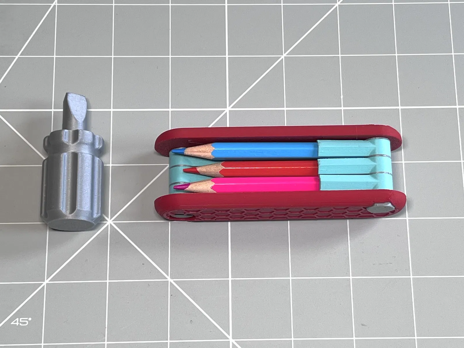 Thêm một món đồ chơi thú vị cho hộp đồ nghệ thuật của bạn. Dụng cụ đa năng bút chì, thiết kế cho bút chì gỗ thông thường, giúp các bé tự lắp ráp và sáng tạo. In không cần support, dễ dàng tùy chỉnh theo máy in của bạn.