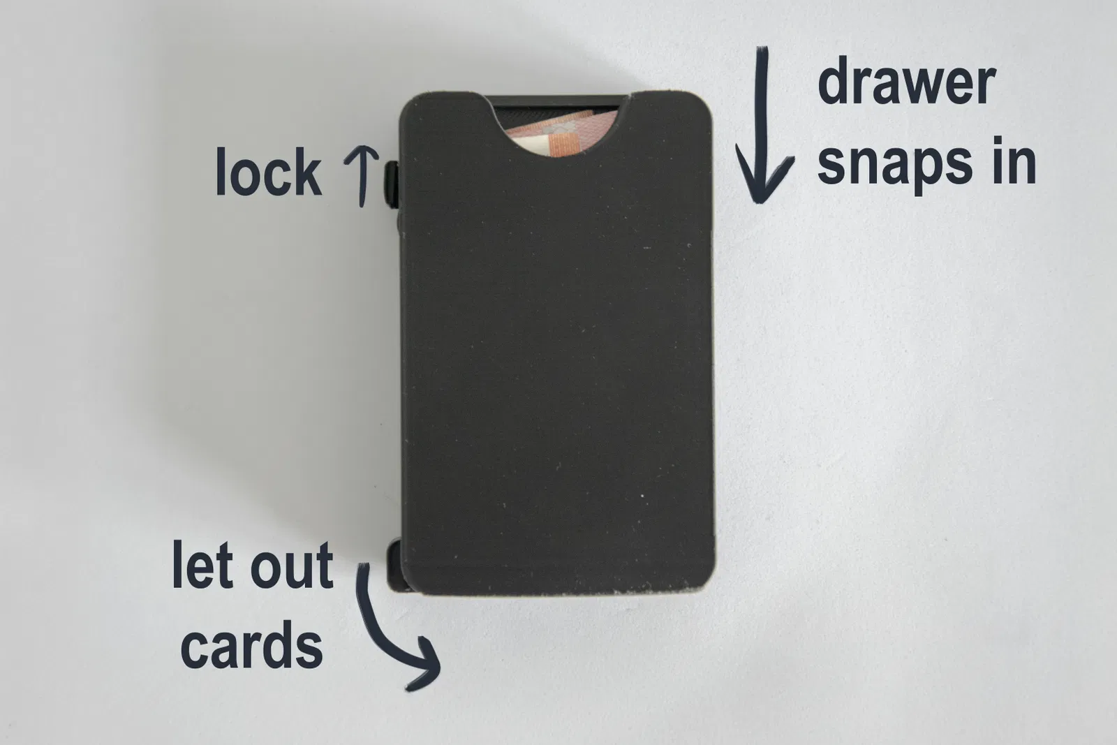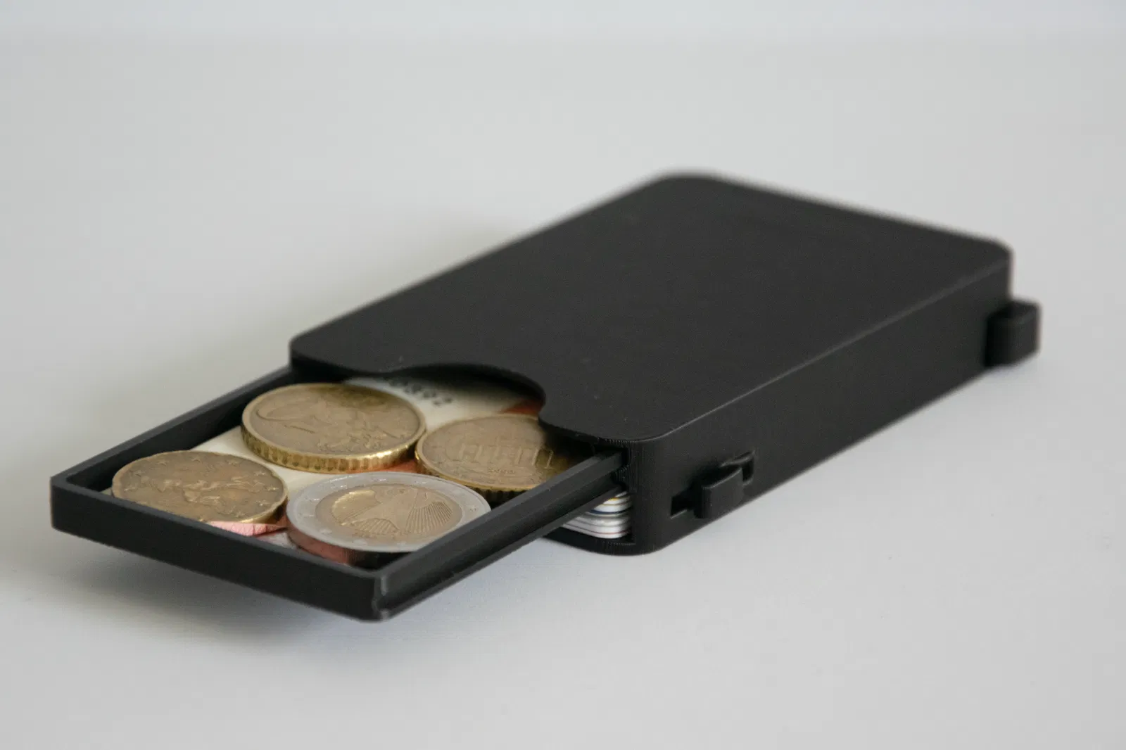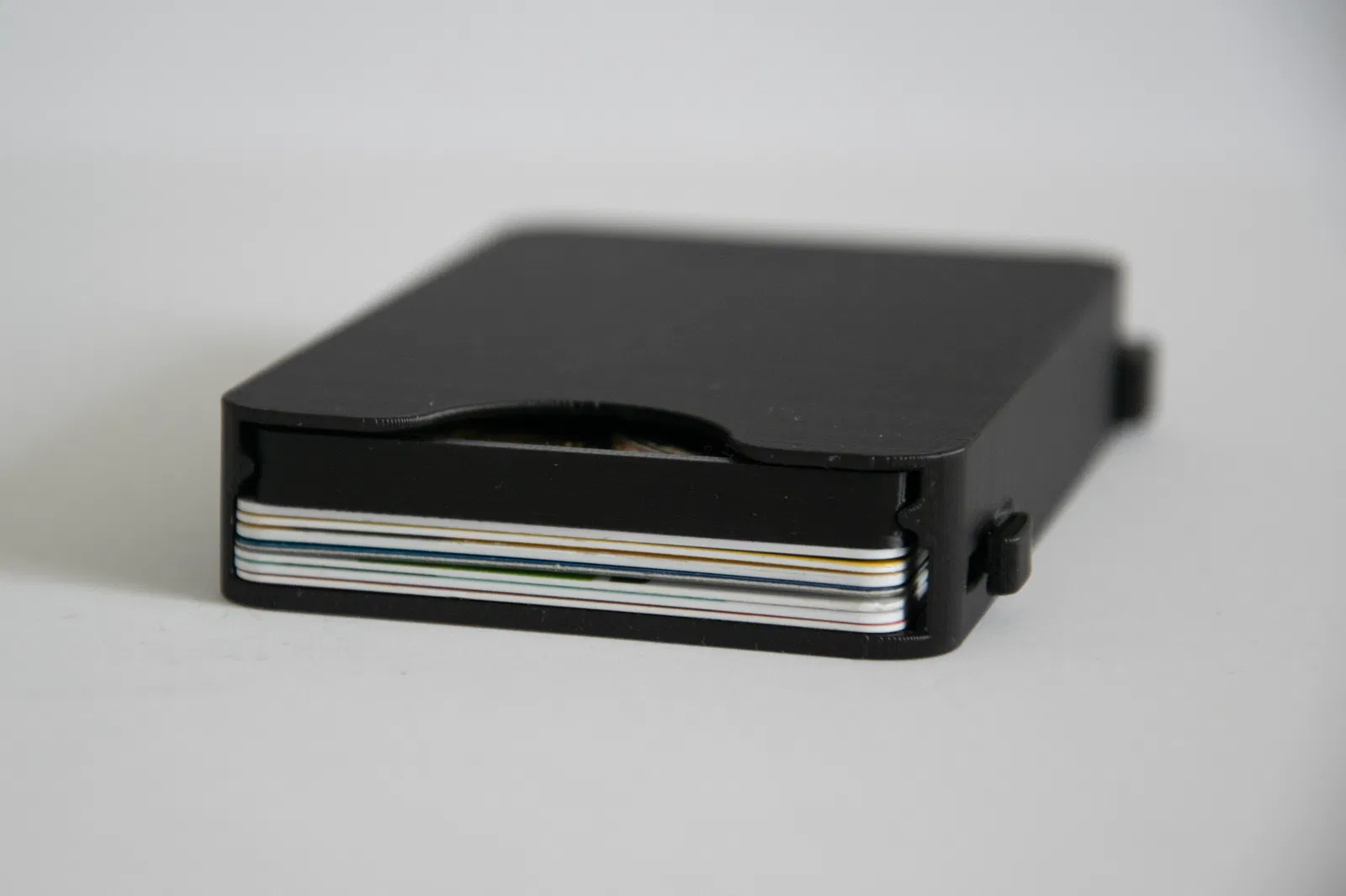 Ví mỏng (V4) in liền, có chỗ cho 7 thẻ và ngăn kéo đựng tiền mặt. Đây là phiên bản cập nhật V3, mỏng hơn 30%, có ngăn kéo, khóa thẻ an toàn và ngăn kéo đóng mở chắc chắn.