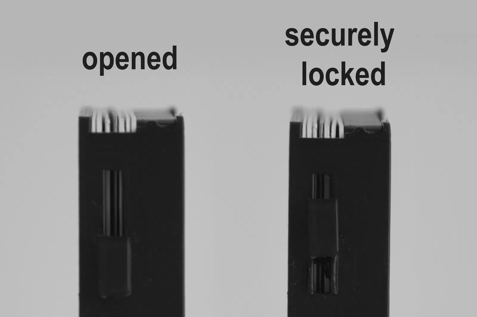 - Thẻ có thể được khóa an toàn nhờ một cái cần gạt ở bên hông