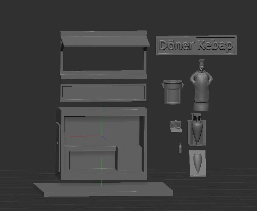 Mô hình quầy Döner Kebab độc đáo, có đầy đủ nội thất và có thể in mà không cần support. Một món đồ chơi thú vị cho những ai yêu thích mô hình kiến trúc, bếp núc, hoặc đồ ăn đường phố.
