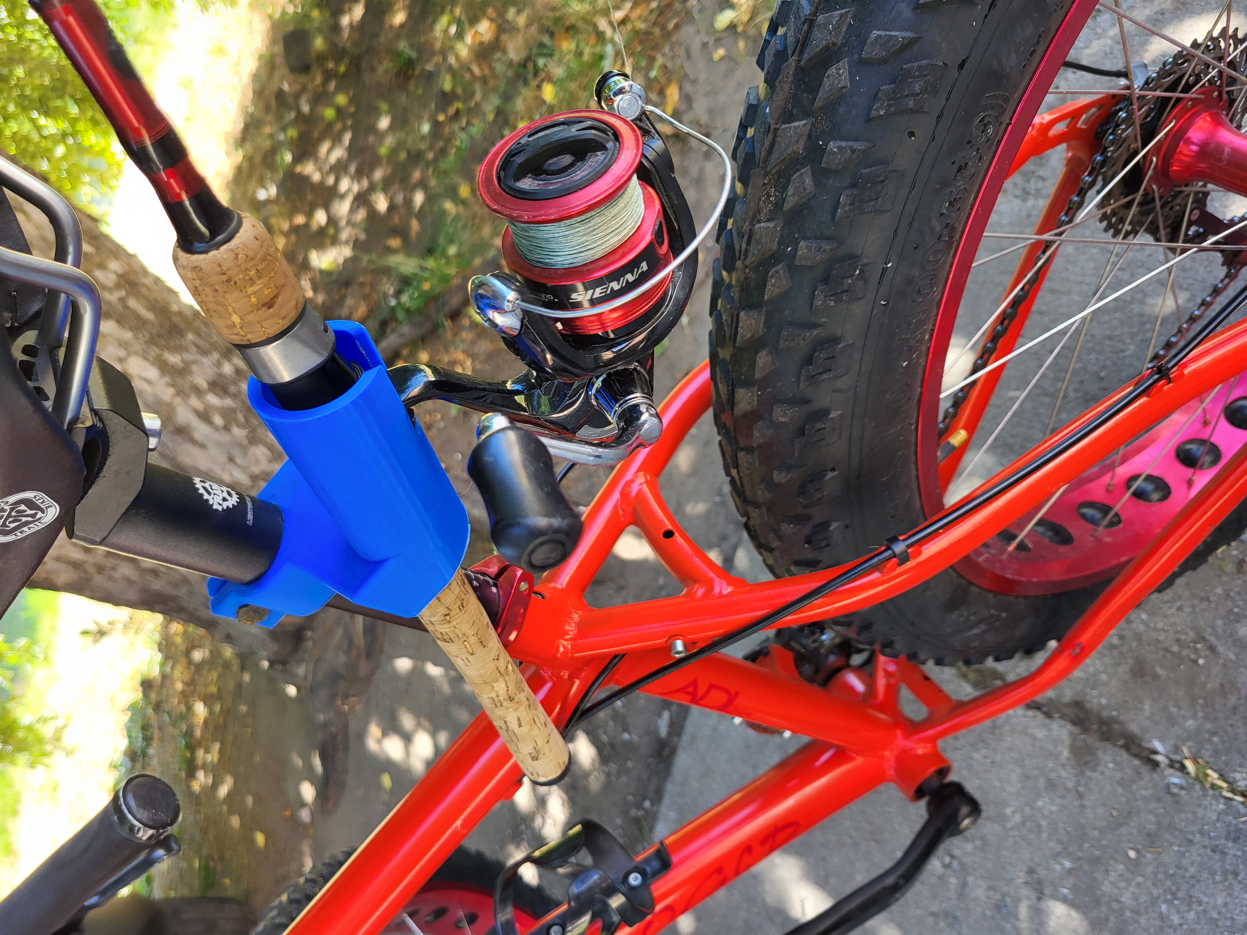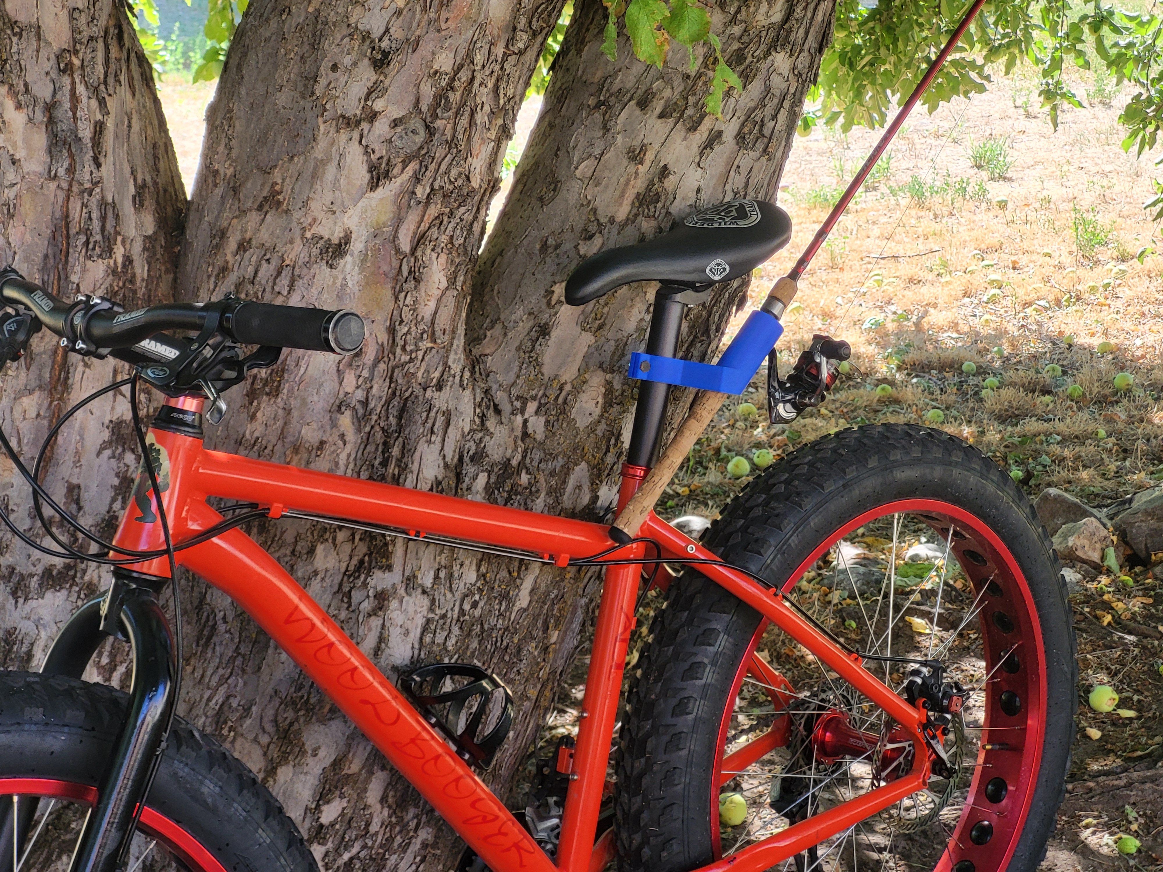 Gắn cần câu cá của bạn vào xe đạp trên cọc yên. Đo đường kính cọc yên của bạn và chọn mẫu phù hợp với xe đạp của bạn. Sử dụng đai ốc và bu lông ¼-20 dễ tìm để siết chặt. Không cần hỗ trợ.