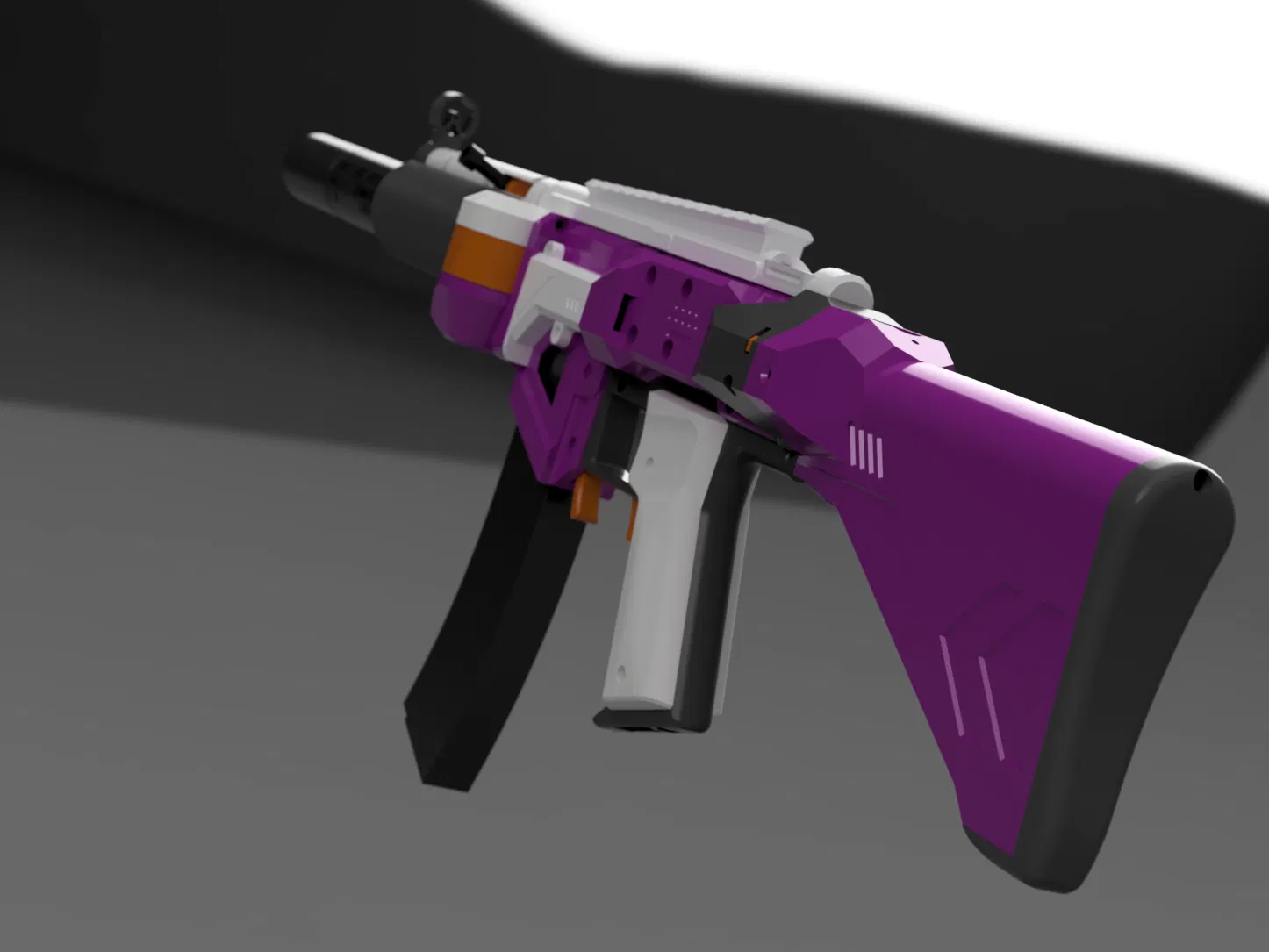 Ổ đạn: Cắt vát để trông giống hơn. Báng súng: Thay đổi góc, thêm phần đỡ ngón tay ở dưới. Tấm ốp báng súng: Thêm phần phình ra cho lòng bàn tay và chỗ lõm cho ngón cái. (không chắc là cái này có thoải mái không) Ốp lót tay: Tách ra khỏi nắp động cơ, kết hợp với đầu ruồi, thiết kế sọc mới. (cũng làm không cần hỗ trợ) Ống dẫn khí: Ống dẫn khí trước: rút ngắn để vừa bộ giảm thanh, Ống dẫn khí sau: loại bỏ khu vực công tắc chọn chế độ, ray nghiêng 2°. Nòng súng: Thêm kiểu HK Tri-Lug để gắn bộ giảm thanh.