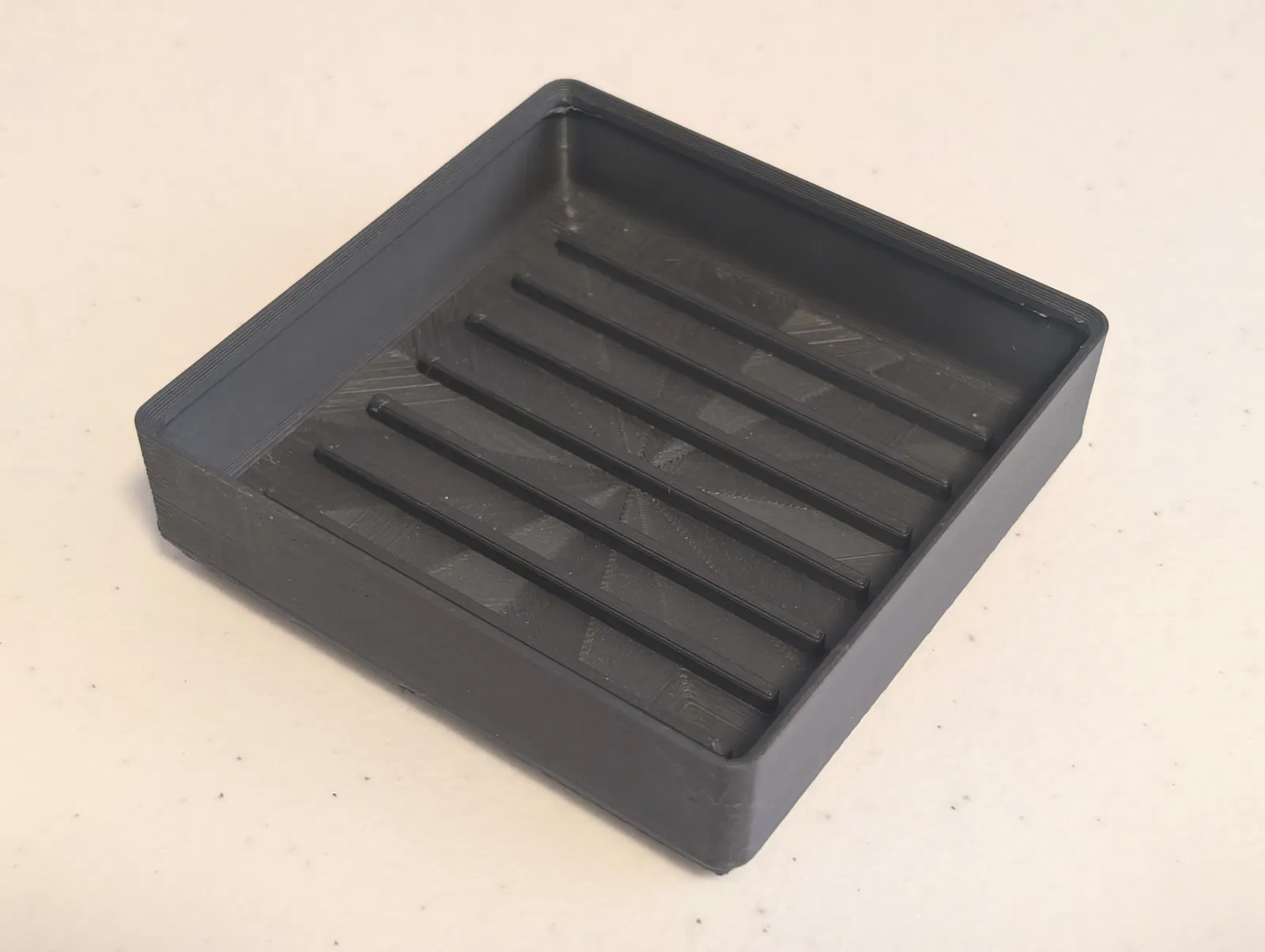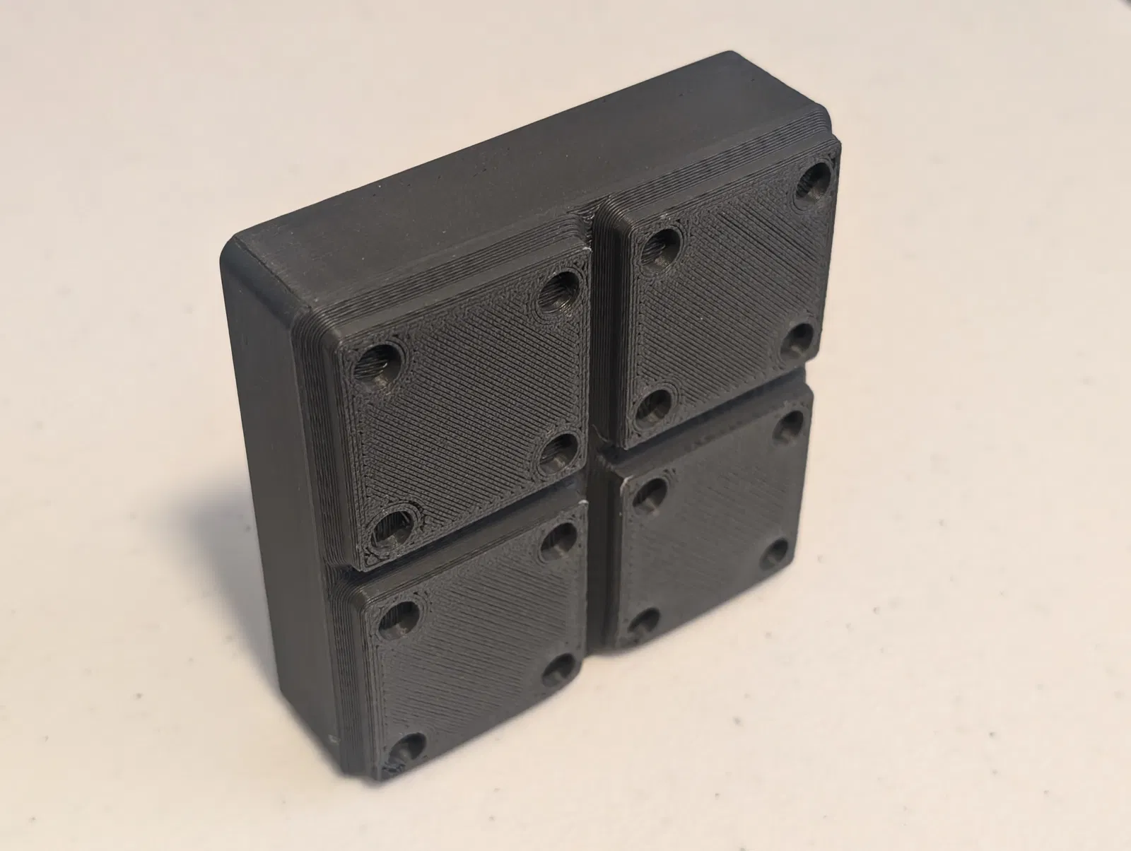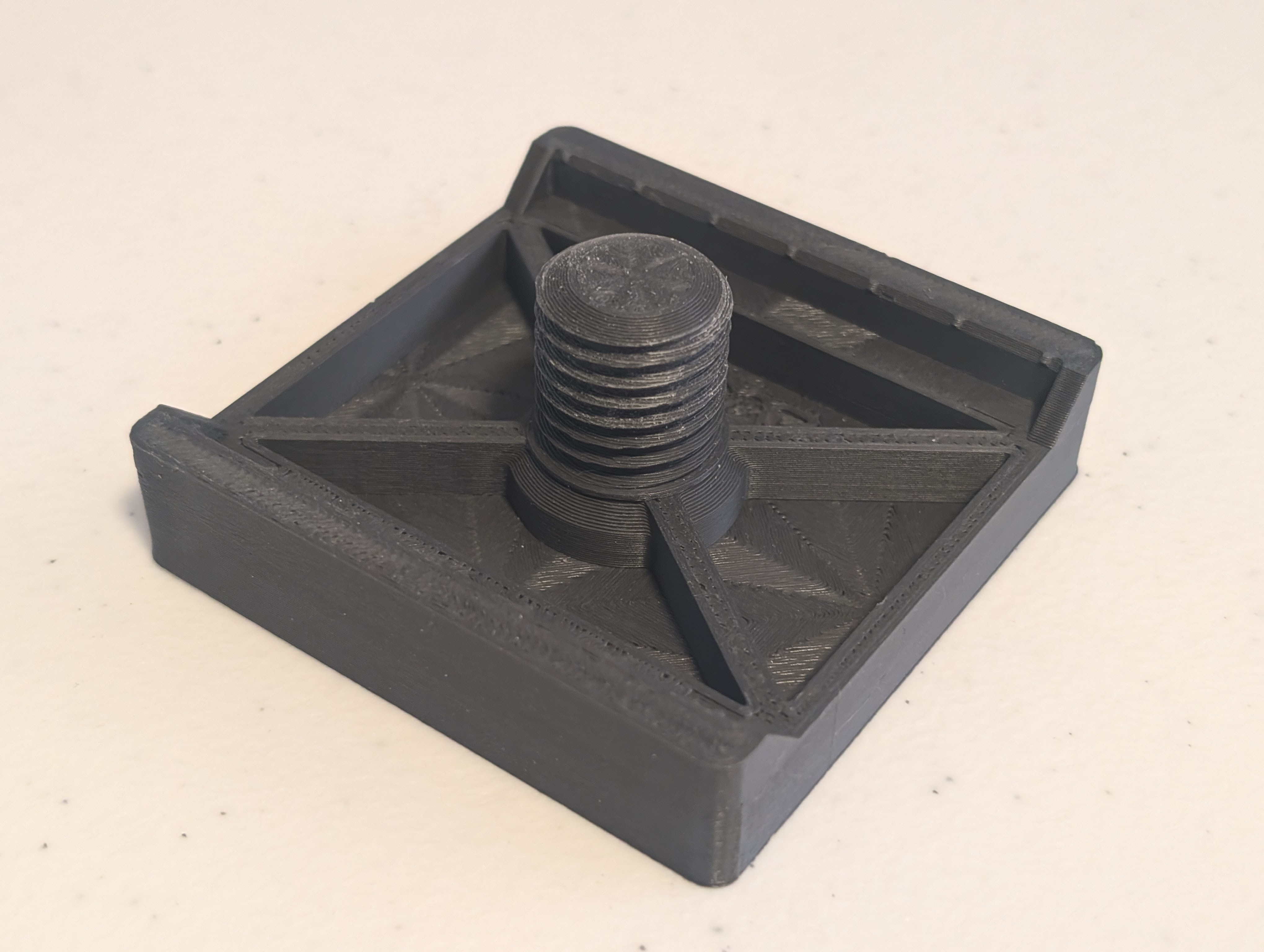 Cái này dựa trên một cái làm sạch khay in bằng vải microfiber mà tui tìm được, in ra xài và tui thấy nó ổn. Vấn đề duy nhất là tui hổng tìm được phiên bản nào theo chuẩn Gridfinity hết. Tui lấy cảm hứng từ cái làm sạch khay in đó và có chỉnh sửa một chút, nhưng dĩ nhiên cái thay đổi lớn nhất là giờ nó bự hơn để vừa với ô Gridfinity 4x4.