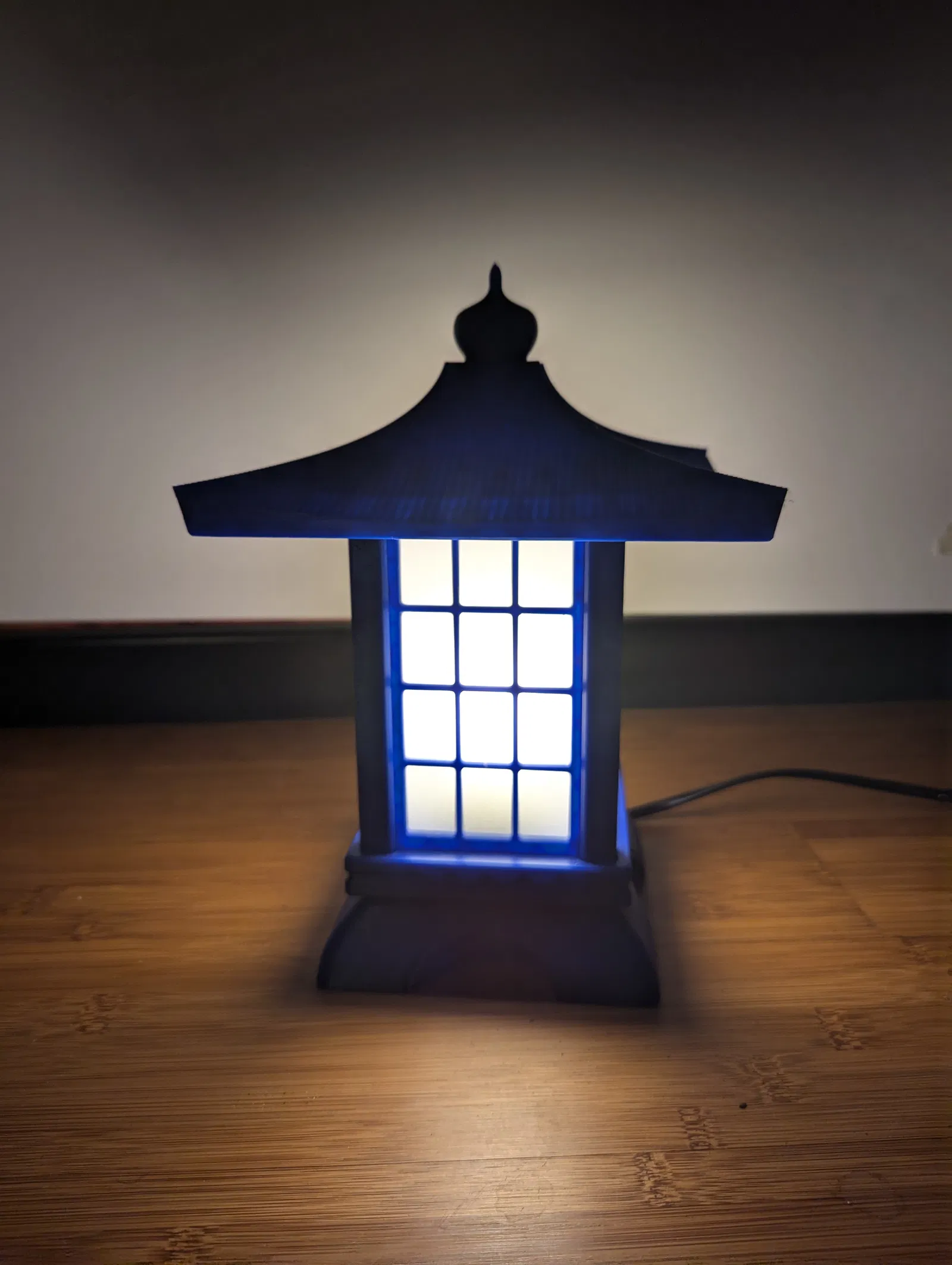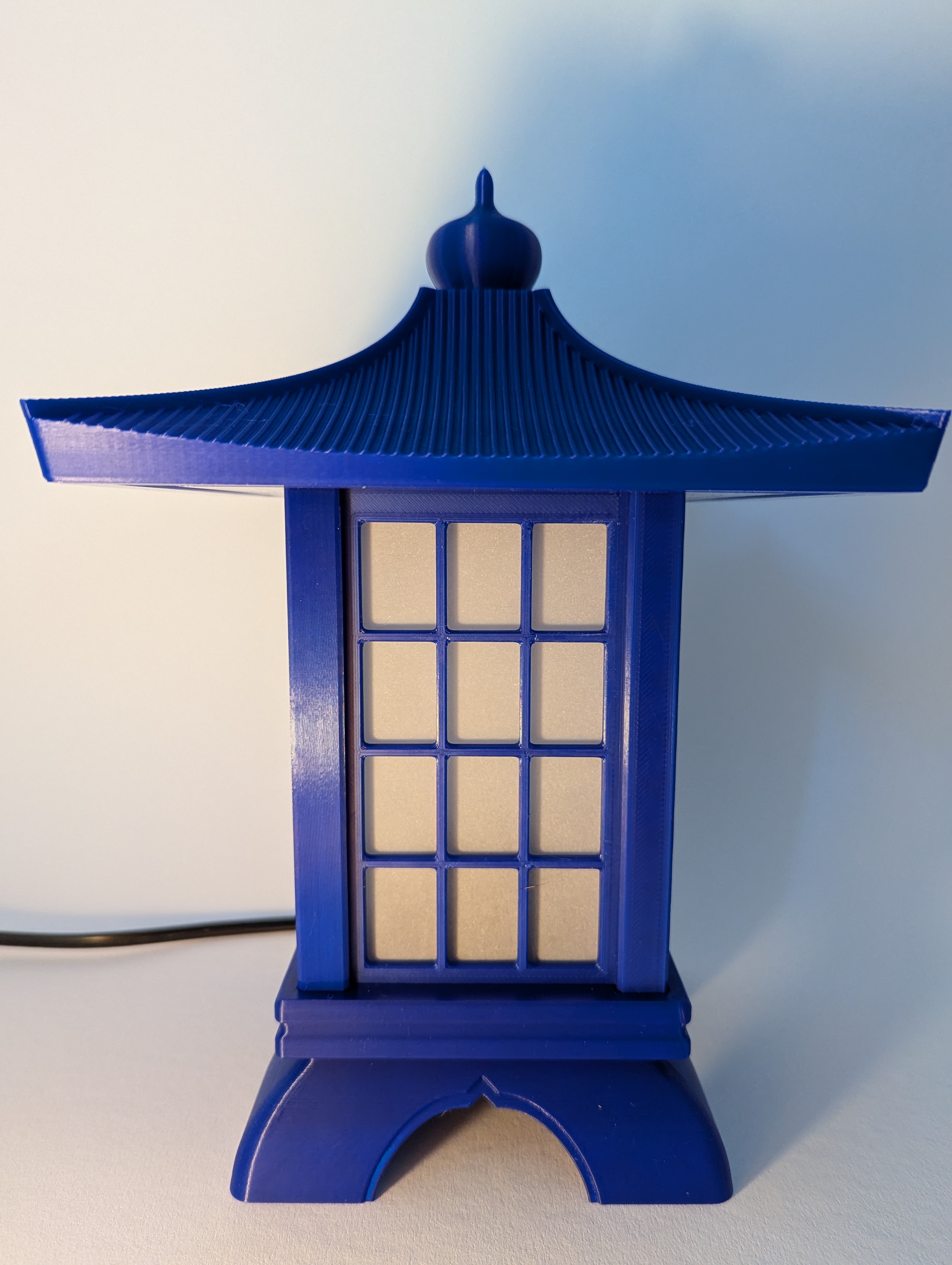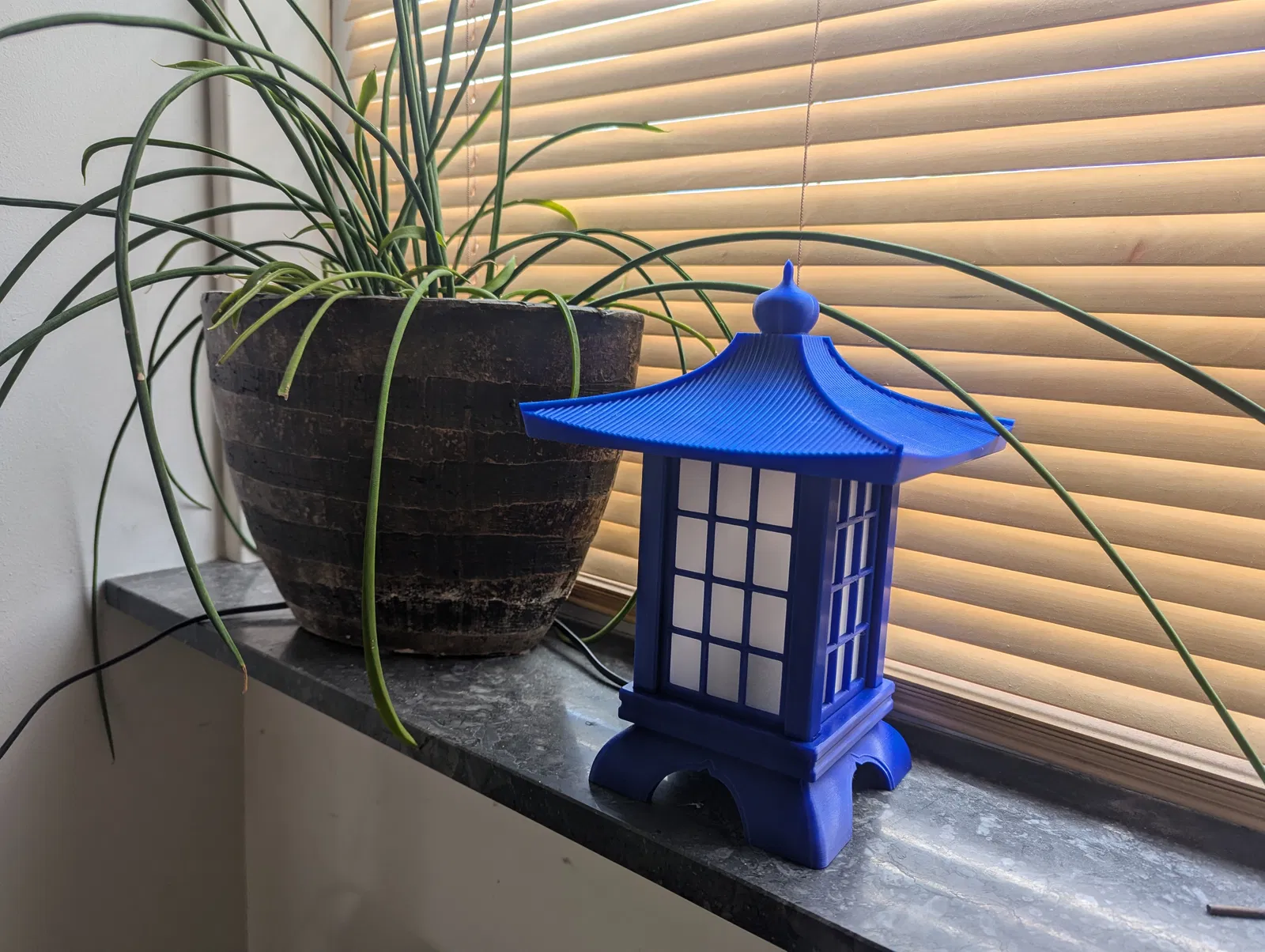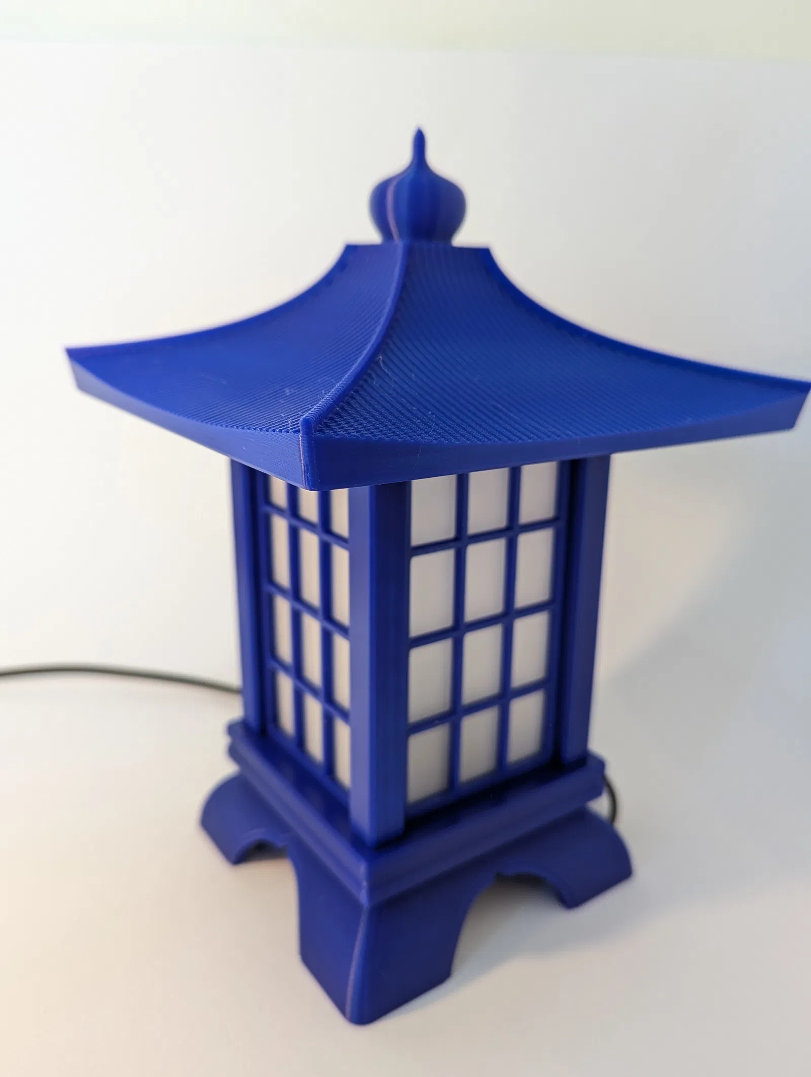 Đèn lồng Nhật Bản phiên bản trong nhà với cửa shoji. Đế đèn vừa vặn với đui E27, có tùy chọn cho đèn LED nhỏ. Có tệp Fusion360 để tùy chỉnh. Hướng dẫn in và lắp ráp chi tiết, không cần support.