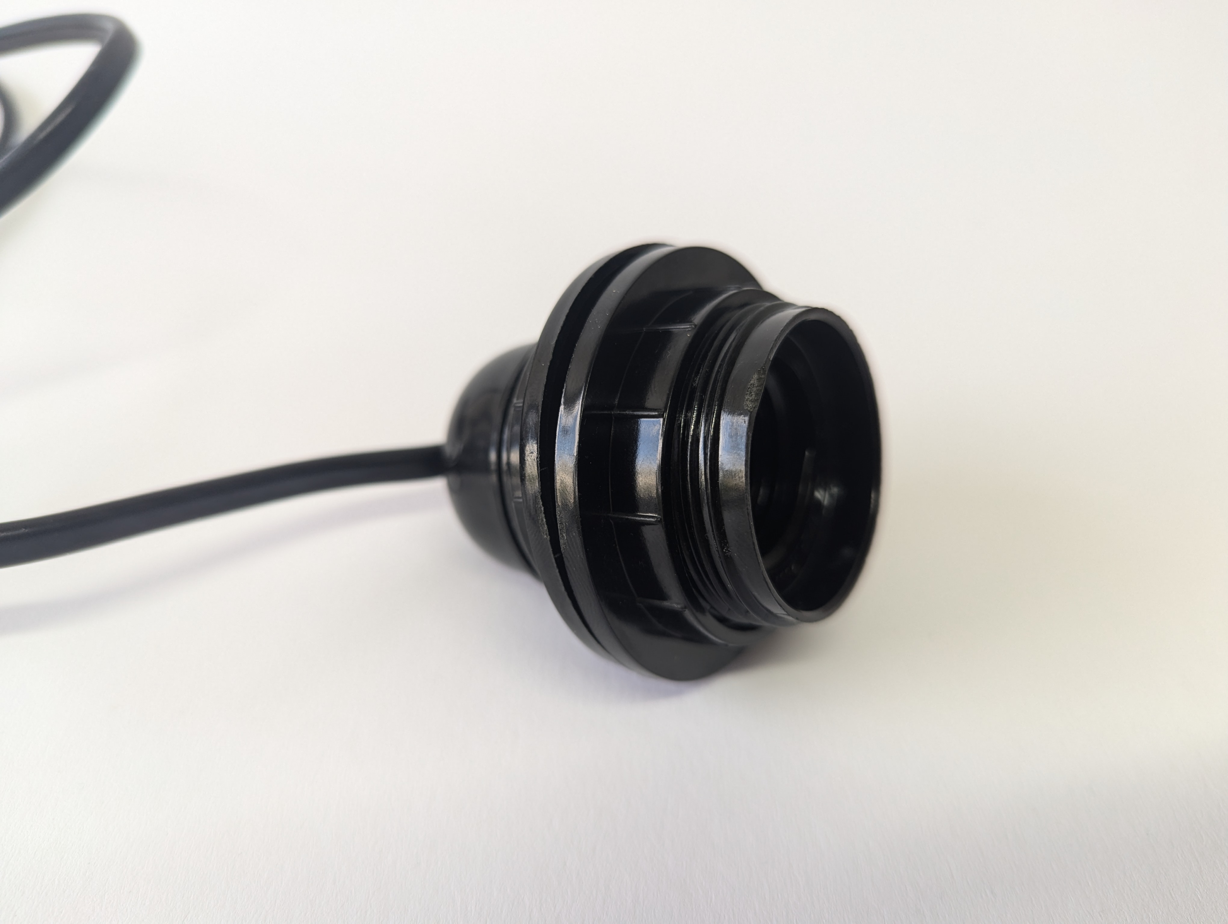 Phần đế có lỗ 40mm để lắp đui đèn E27 (xem hình), đui này có hai vòng giữ cố định.