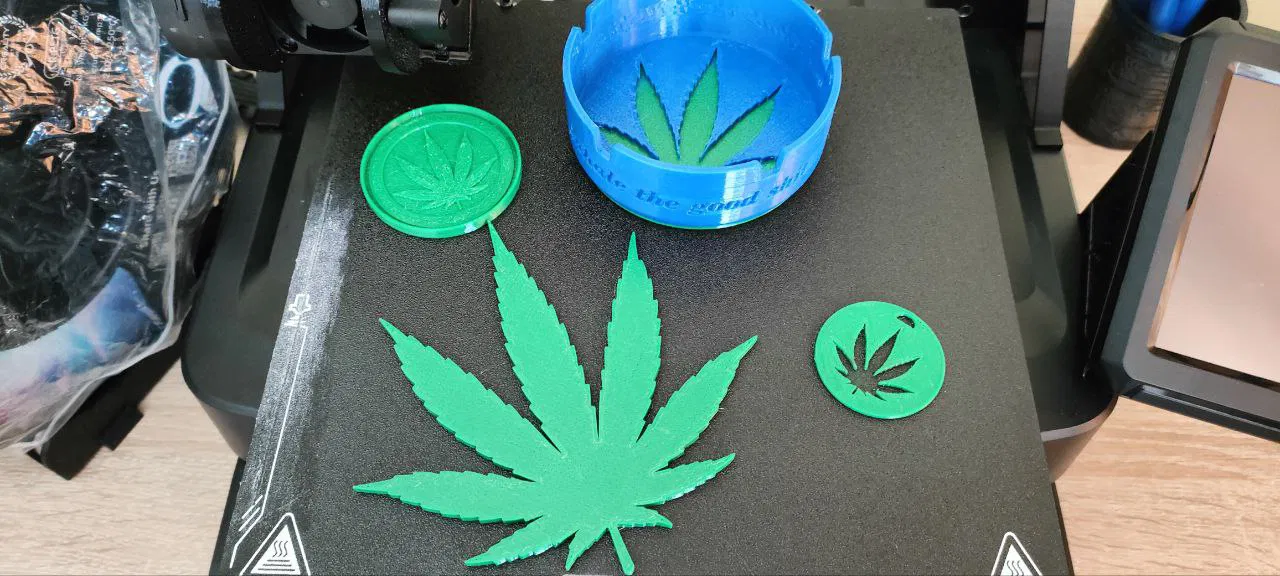 Mình đã có sẵn mẫu lá trong Fusion360, nên mình tạo ra mấy món đồ với nó nè! Có mấy món như coaster, móc khóa, token, và cả gạt tàn nữa. In ở độ cao lớp 0.2mm, mật độ điền 15%, 2 lớp thành. Gạt tàn thì 4 lớp thành. Nên đổi màu giữa chừng để đẹp hơn đó!