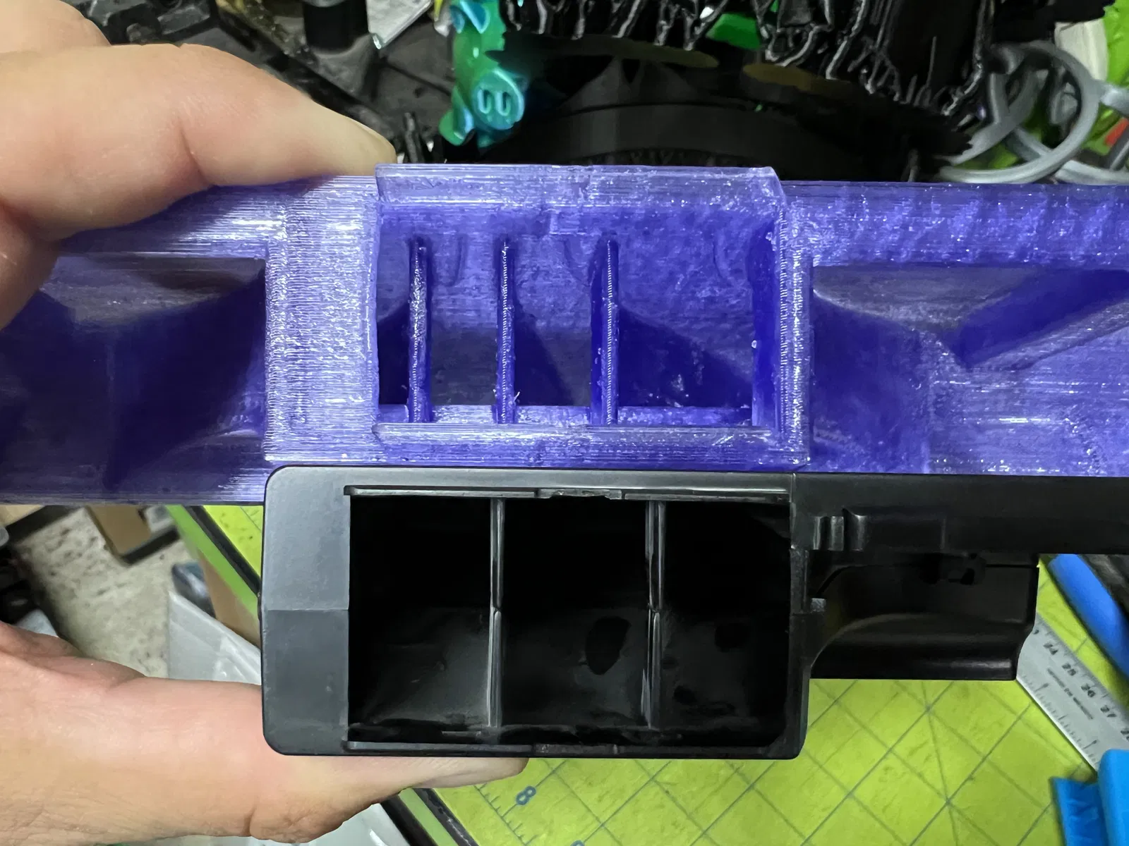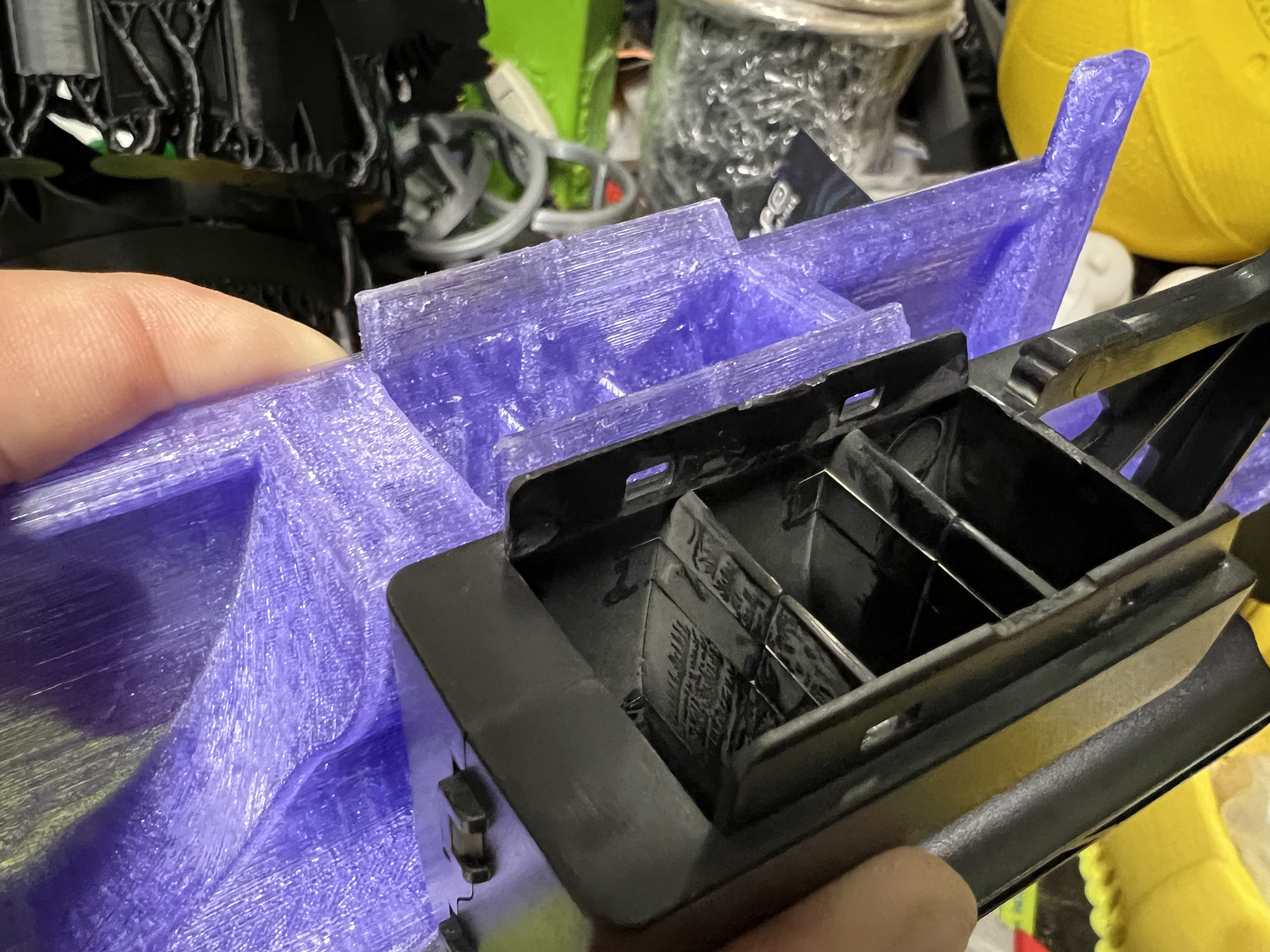 Tôi đã kéo dài nó lên 74.5mm để bằng đúng chiều cao của vị trí quạt phụ tùng gốc, đồng thời tạo một đường cắt bên để có khoảng trống chính xác với giá đỡ camera gốc.
