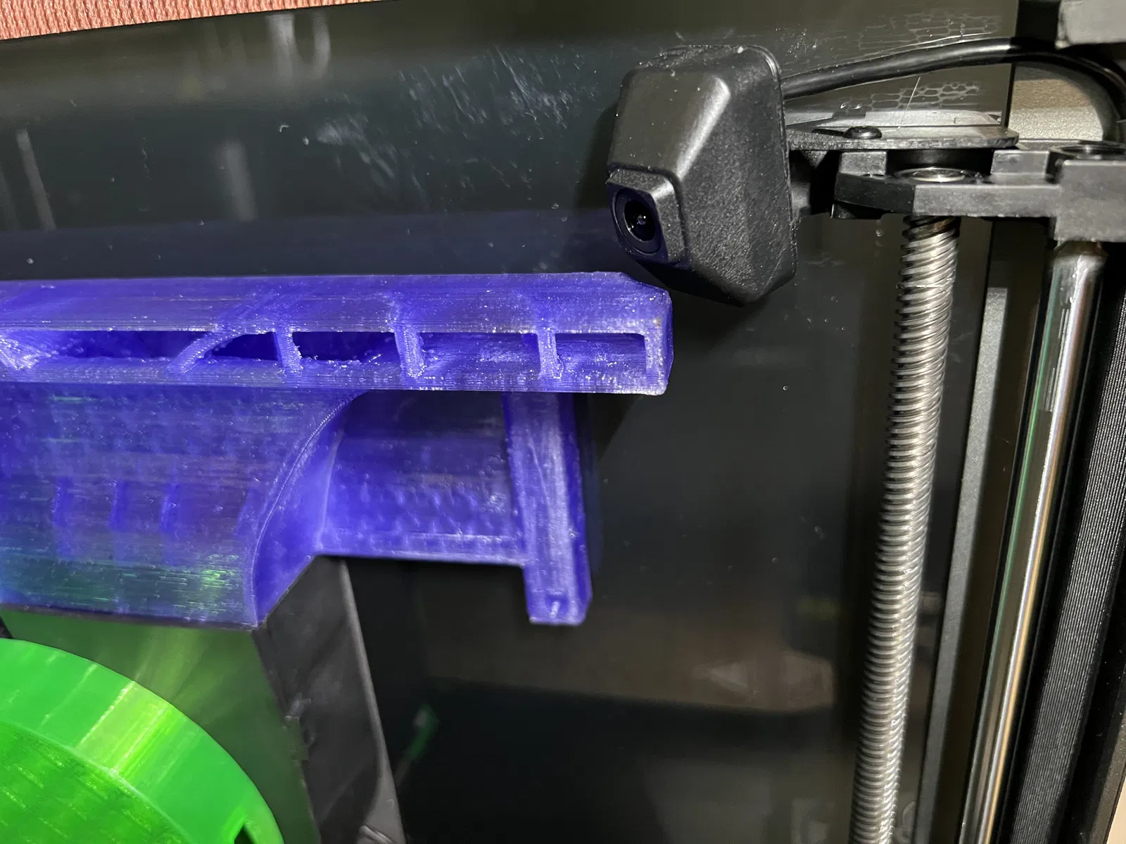 Chuyển thể từ thiết kế Không cần hỗ trợ của Yodog. Tôi có mua 2 cái K1 Max mới và nhận thấy Quạt Bên đã được Cập nhật trên các Mẫu mới nhất 2024. Thiết kế cũ không còn khớp, nên tôi đã làm lại hành lang nối với ống thoát khí quạt đã cập nhật, kéo dài lên 74.5mm và thêm đường cắt cho giá đỡ camera.