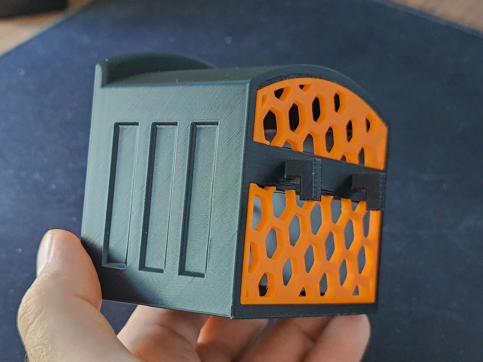 Cái thiết kế này cho phép đổi mấy cái tấm nhấn nhá phía trước với phía sau nên bạn có thể tùy ý chọn màu cho cái của mình nha! Tại vì mấy tấm này in riêng nên bạn không cần có AMS cũng xài được! Mấy tấm được thiết kế hơi khít với cái mẫu chính để nó chắc chắn mà không quá khó để tháo ra đâu. Nhớ căn chỉnh máy in cho chuẩn nha để in ra cho nó đẹp.