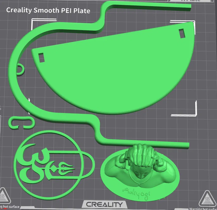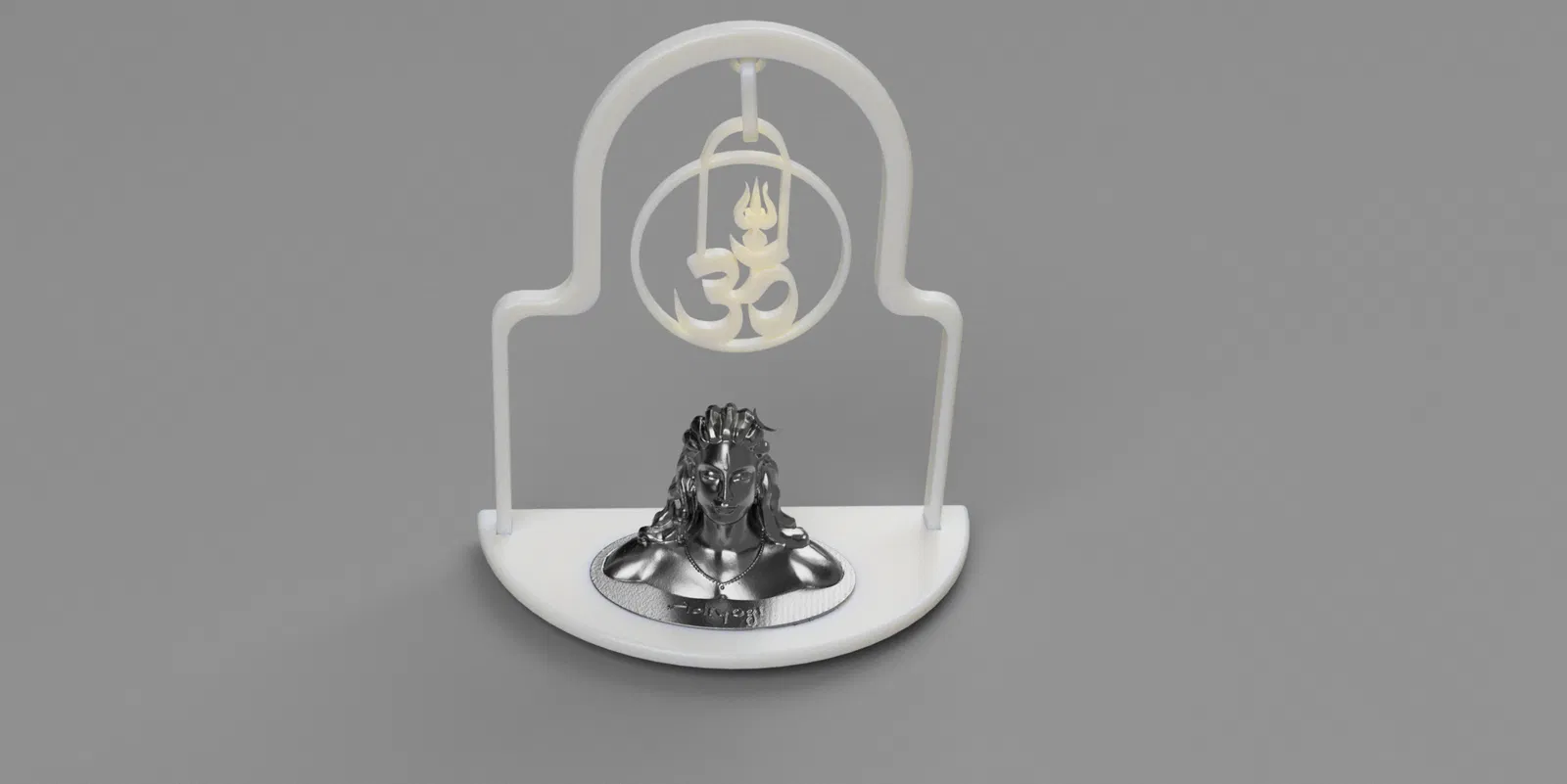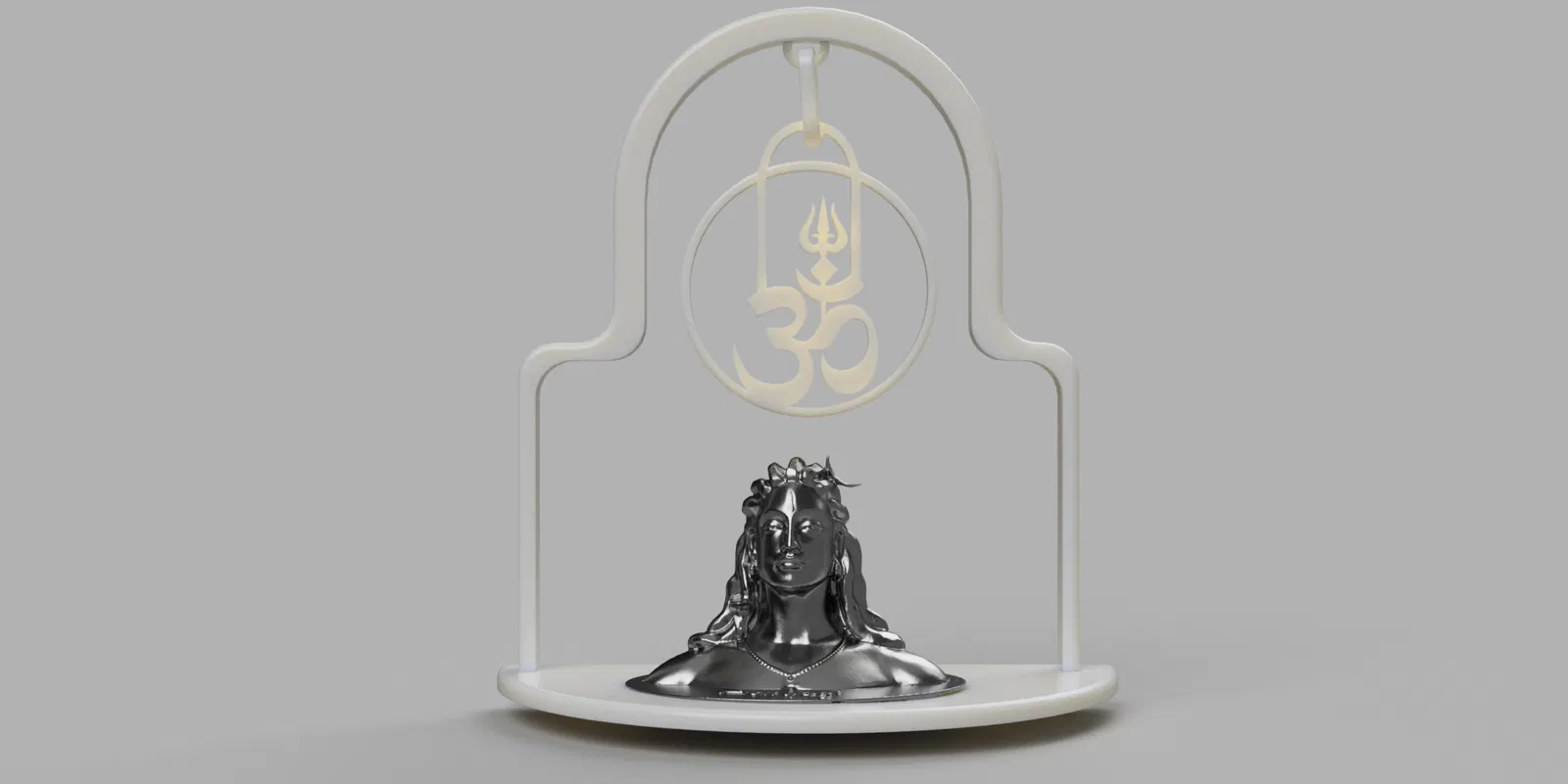 Mô tả: Đây là một mô hình in 3D với hình tượng Bệ thờ Thần Shiva, đi kèm với biểu tượng Om (ॐ) được thiết kế tinh xảo cùng với vòng cung Trishul (chĩa ba) và Lingam. Mô hình được tạo ra bằng Fusion 360 và thể hiện bản chất tâm linh của Ấn Độ giáo.