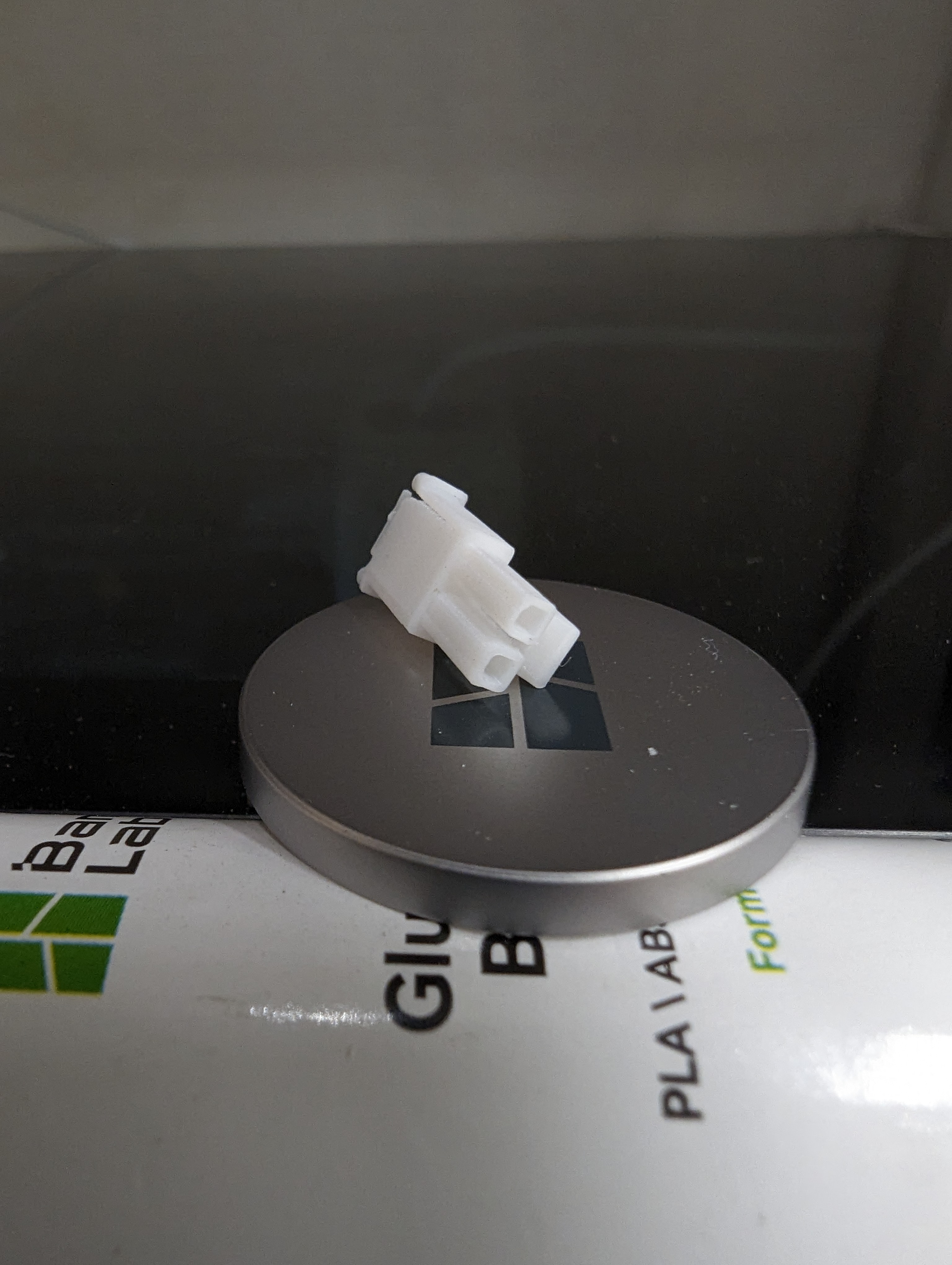 Cái Bambu X1 và P1P có một cổng kết nối 4 chân ở phía sau, thường được dùng cho hệ thống AMS. Tôi không có cái đó nhưng muốn đấu nối đèn LED 24v và quạt hút khí có lọc qua cổng 4 chân này. Vì không cần 2 chân còn lại, tôi lấy một đầu nối Molex Microfit 3.0 loại 2x2 và cắt đôi nó (bạn không thể dùng đầu nối 2 chân của hệ sinh thái microfit vì chân của nó có hình dạng đặc biệt, không cho phép cắm vào cổng 4 chân). Đầu nối này không hoàn hảo – các chân sẽ không khớp/khóa vào vị trí – nhưng nó hoạt động đủ tốt, chỉ cần ma sát giữ mọi thứ ở đúng chỗ.