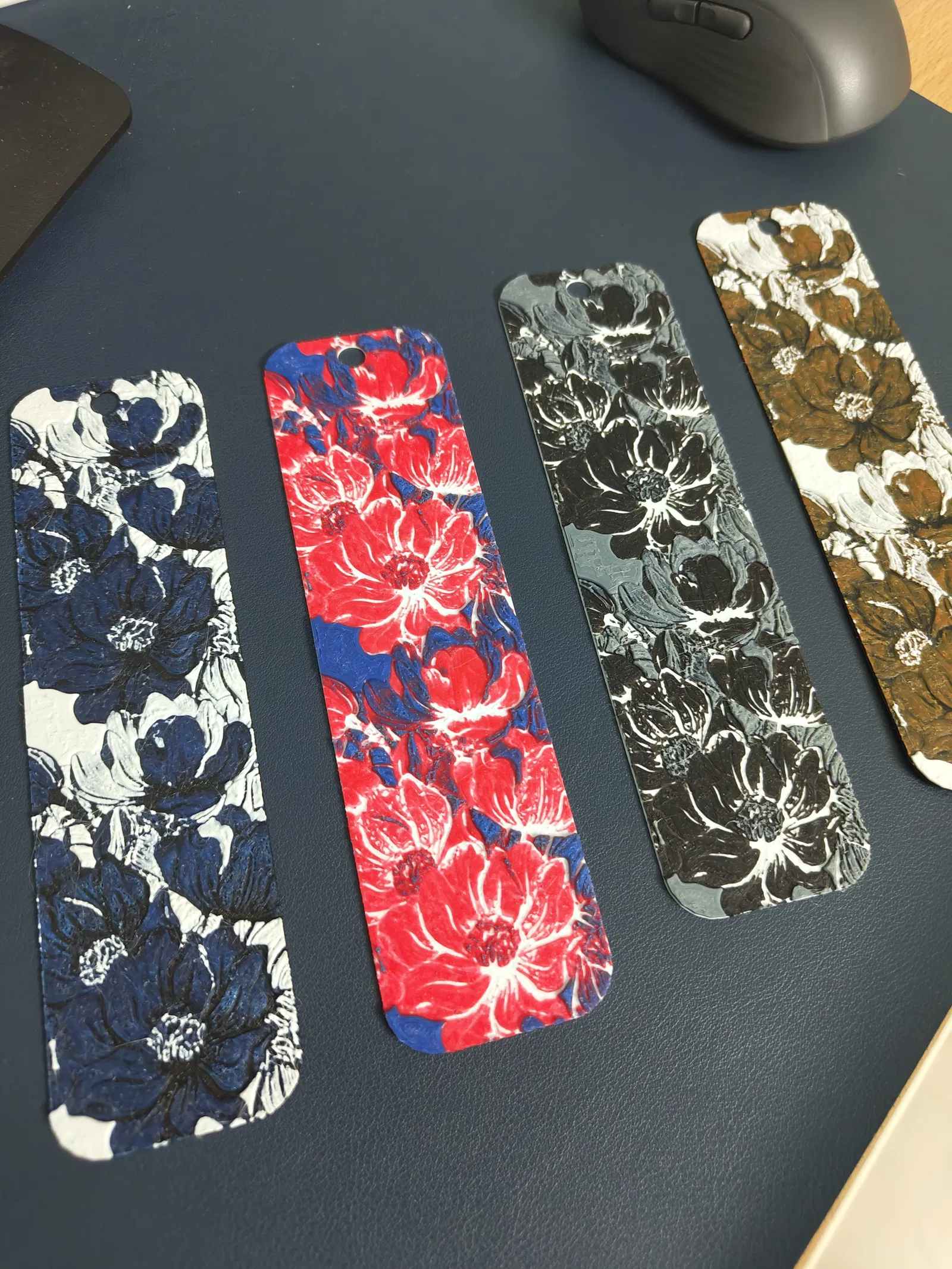 In bookmarker hoa với độ cao lớp 0.08mm và 100% infill. Bắt đầu với màu đen, đổi sang Đỏ ở lớp 7 và Trắng ở lớp 11. Thích hợp cho người yêu sách và thích trang trí.