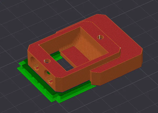 Chất liệu: PETG Infill 100% (Quan trọng đối với adapter có offset để có độ ổn định) Support chỉ dành cho adapter offset, nhưng không cần trong các lỗ ren. Tui đã gặp sự cố cong vênh với 100% Infill, vì vậy tui đã làm nóng trước trong vỏ P1S kín và đặt Part Fan 0%, Aux Fan 60%, Exhaust Fan 30%.