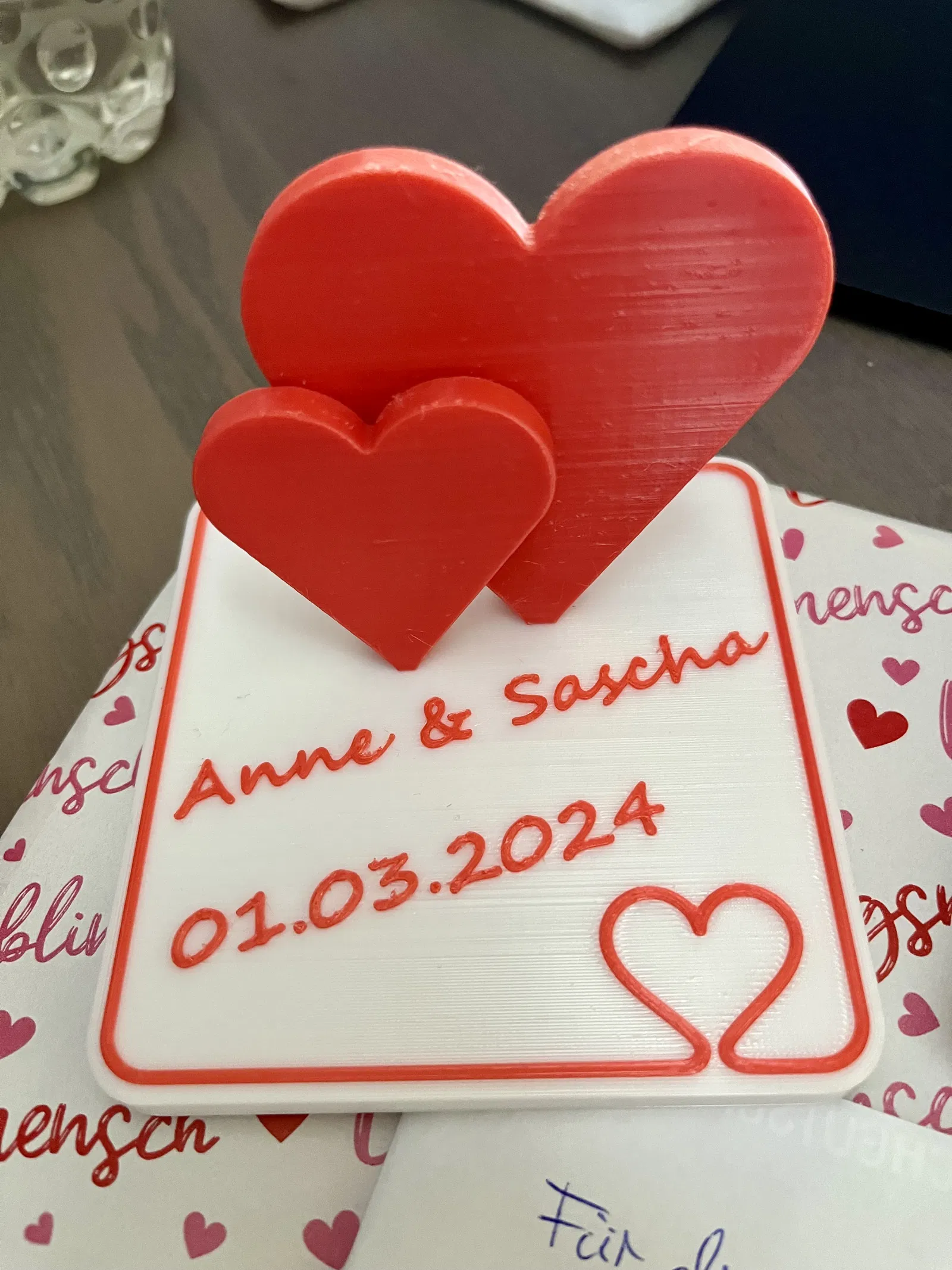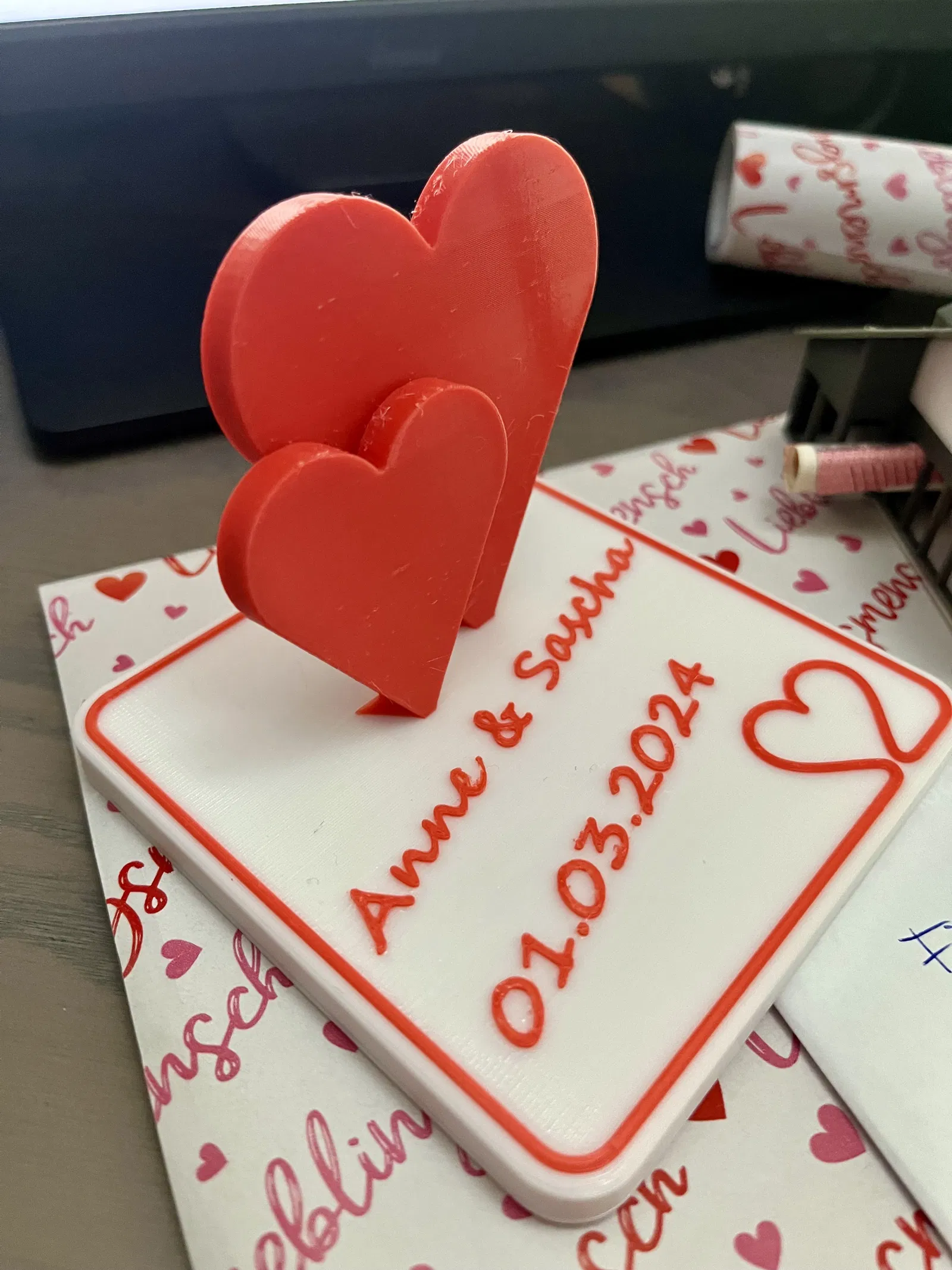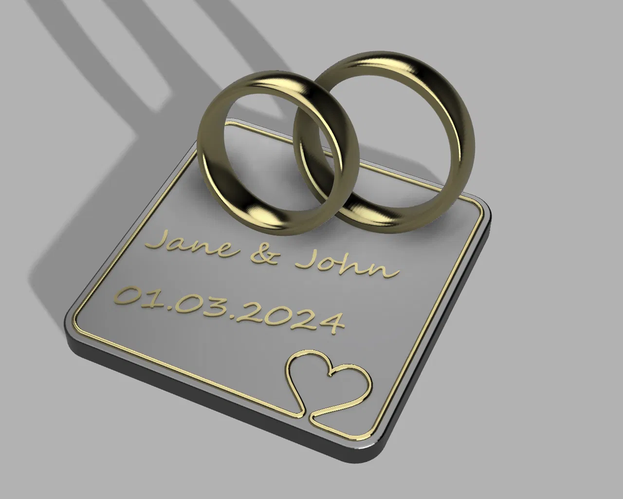 Mô hình này có thể tùy chỉnh tên và ngày, và dùng làm quà cưới nha. Mô hình có kích thước khoảng 10x10cm. Mô hình này không cần AMS hay MMU, nhưng cần đổi màu dây tóc. Mấy bạn nhớ coi kỹ cách làm với máy in của mình nha.