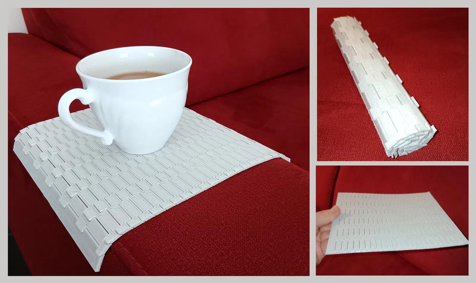 Đây là một phiên bản chỉnh sửa của khay sofa gấp gọn, được tối ưu hóa để lấp đầy bàn in. Nó có thể cuộn lại theo một hướng và giữ nguyên hình dạng theo hướng kia, đồng thời cũng có thể dùng làm thảm sushi. Lưu ý khi in và xử lý để đảm bảo chức năng gấp đúng hướng.
