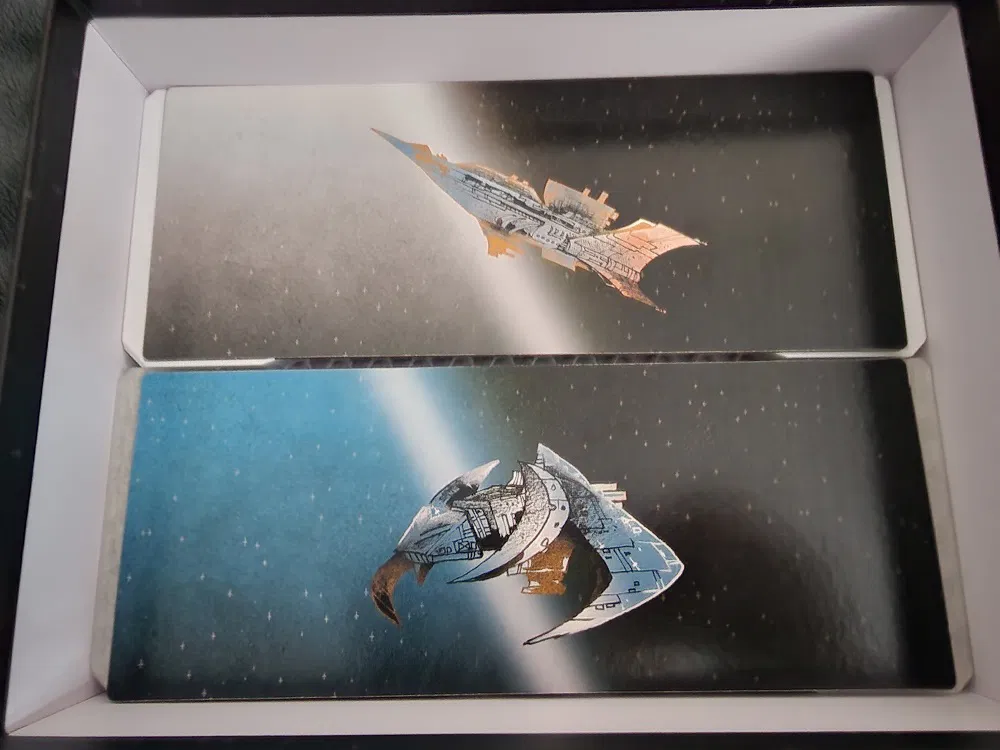 Đặt hai khay người chơi, cùng tất cả tàu, đặc vụ, thành phố, cảng không gian và khối năng lượng, cạnh nhau ở đáy hộp, như hình: