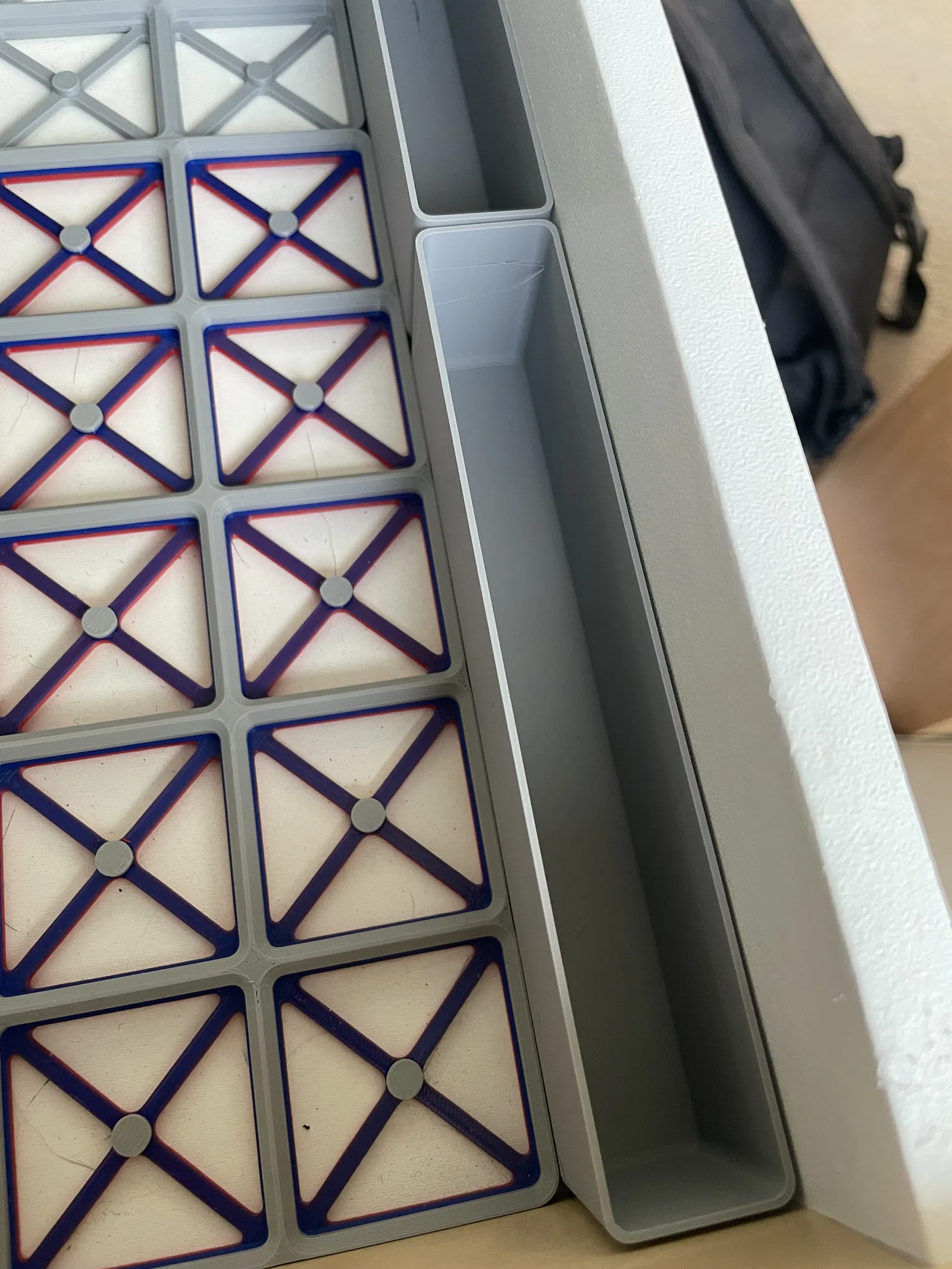 Mấy cái khay nhỏ để xài chung với đế Gridfinity trong ngăn kéo bàn máy tính IKEA Micke, giúp lấp đầy khoảng trống và giữ mọi thứ gọn gàng. Cao 4cm.