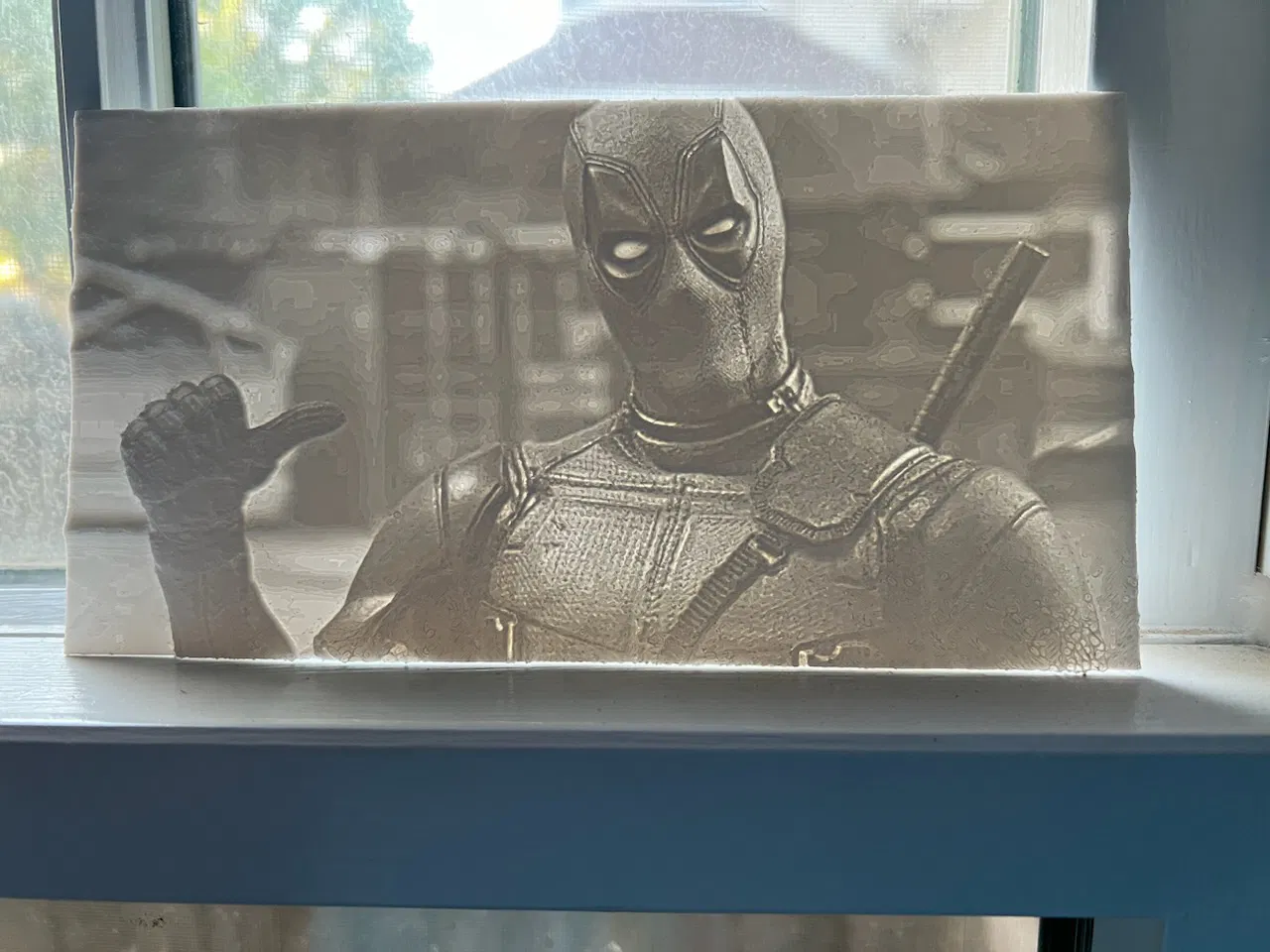 Tui là fan bự của Deadpool với Ryan Reynolds nên cho bà con đây nè. Mô hình ảnh lithophane Deadpool in bằng sợi PLA trắng, lần đầu đóng góp.