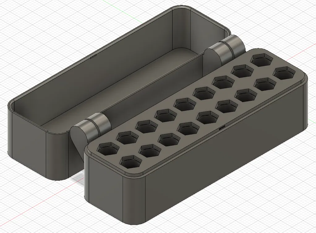 Thứ ra đời là một kiệt tác sáng tạo (gần như vậy). Với các bản lề xoay đẹp mắt và một rãnh tích hợp thông minh để cố định nắp, thiết kế này không chỉ thiết thực mà còn rất thú vị khi in. Và phần hay nhất? Nó hoàn toàn là dạng "print-in-place", loại bỏ sự phiền phức khi lắp ráp.