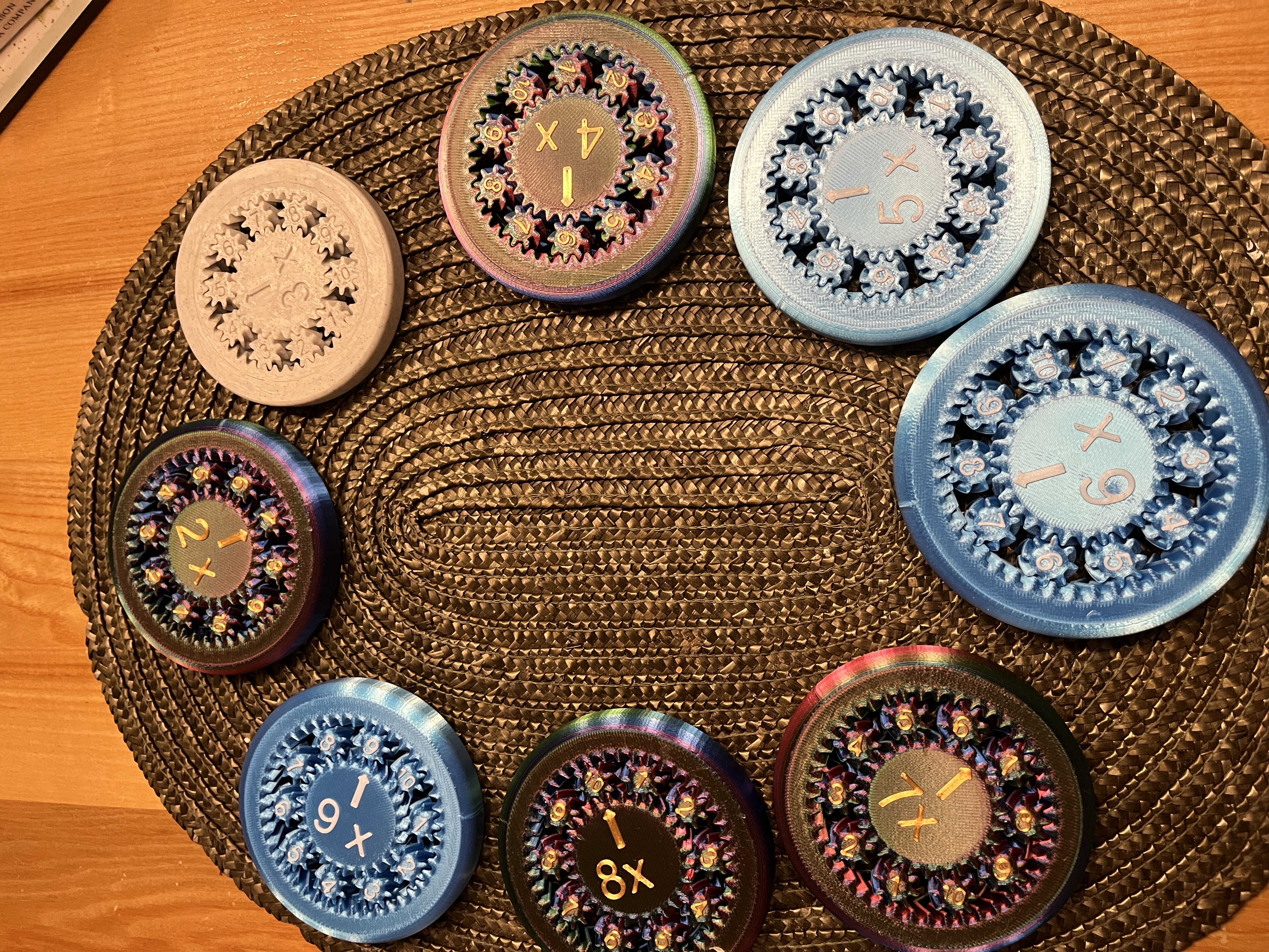 Bánh răng fidget này được làm để dạy các phép tính cơ bản. Người dùng có thể in bằng PLA và thay đổi màu cho các lớp số. Một số bánh răng có thể hơi sít, nhưng dễ dàng tách ra và bôi trơn để quay mượt mà.