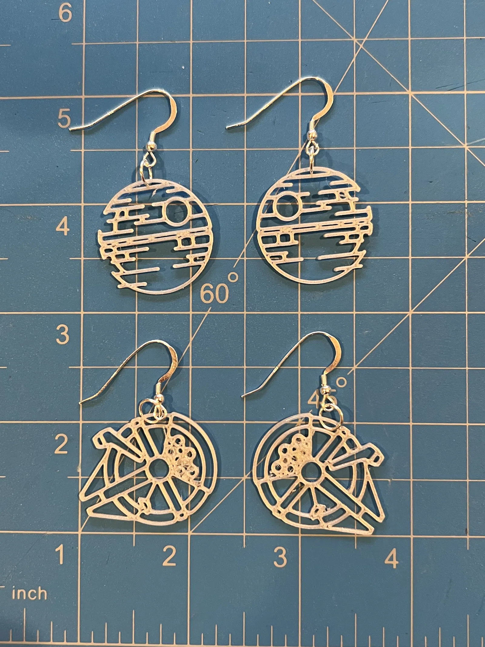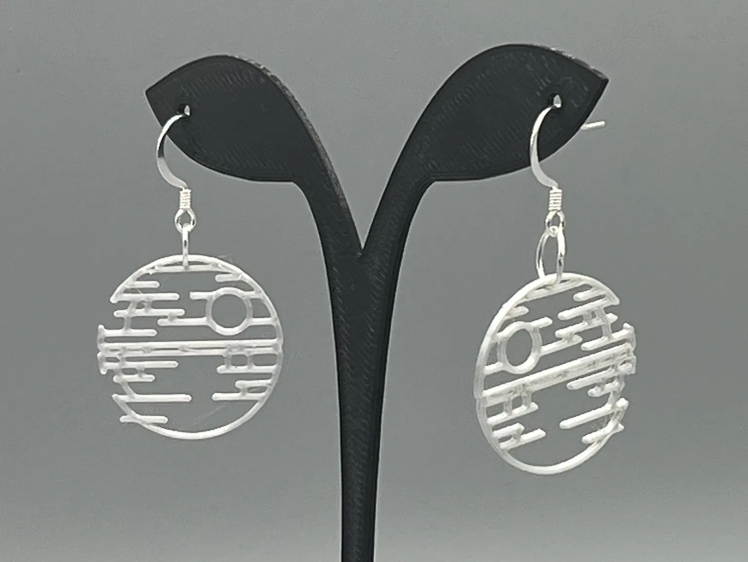 Phiên bản hoa tai Star Wars được chỉnh sửa kích thước cho phù hợp hơn, với thiết kế line art độc đáo. Người đăng đã giảm kích thước gốc 80% và làm mỏng chỉ còn 1mm, thêm phụ kiện bạc để hoàn thiện. Thích hợp cho fan Star Wars muốn đeo trang sức phong cách.