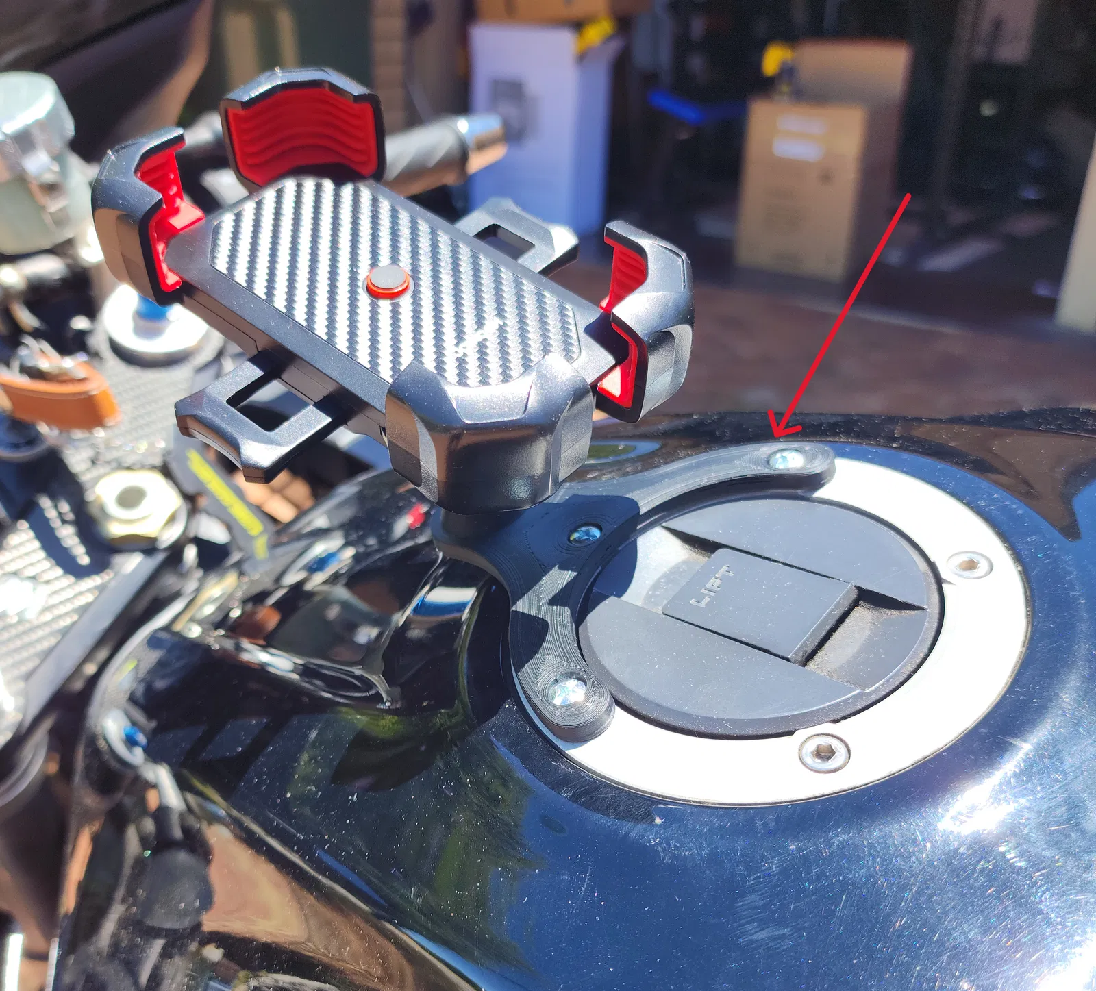 Cái này được thiết kế cho chiếc Suzuki SV 1000s đời 2004, nhưng nó cũng sẽ phù hợp với các đời SV 650 (S & N) tương tự, các SV 1000s khác và bất kỳ xe Suzuki nào có 5 ốc ở nắp xăng. Tui nghĩ nó cũng có thể gắn được cho mấy xe Nhật khác như Kawasaki, nên tui có để kèm một cái đế thử để bạn tự kiểm tra xem có phù hợp không.