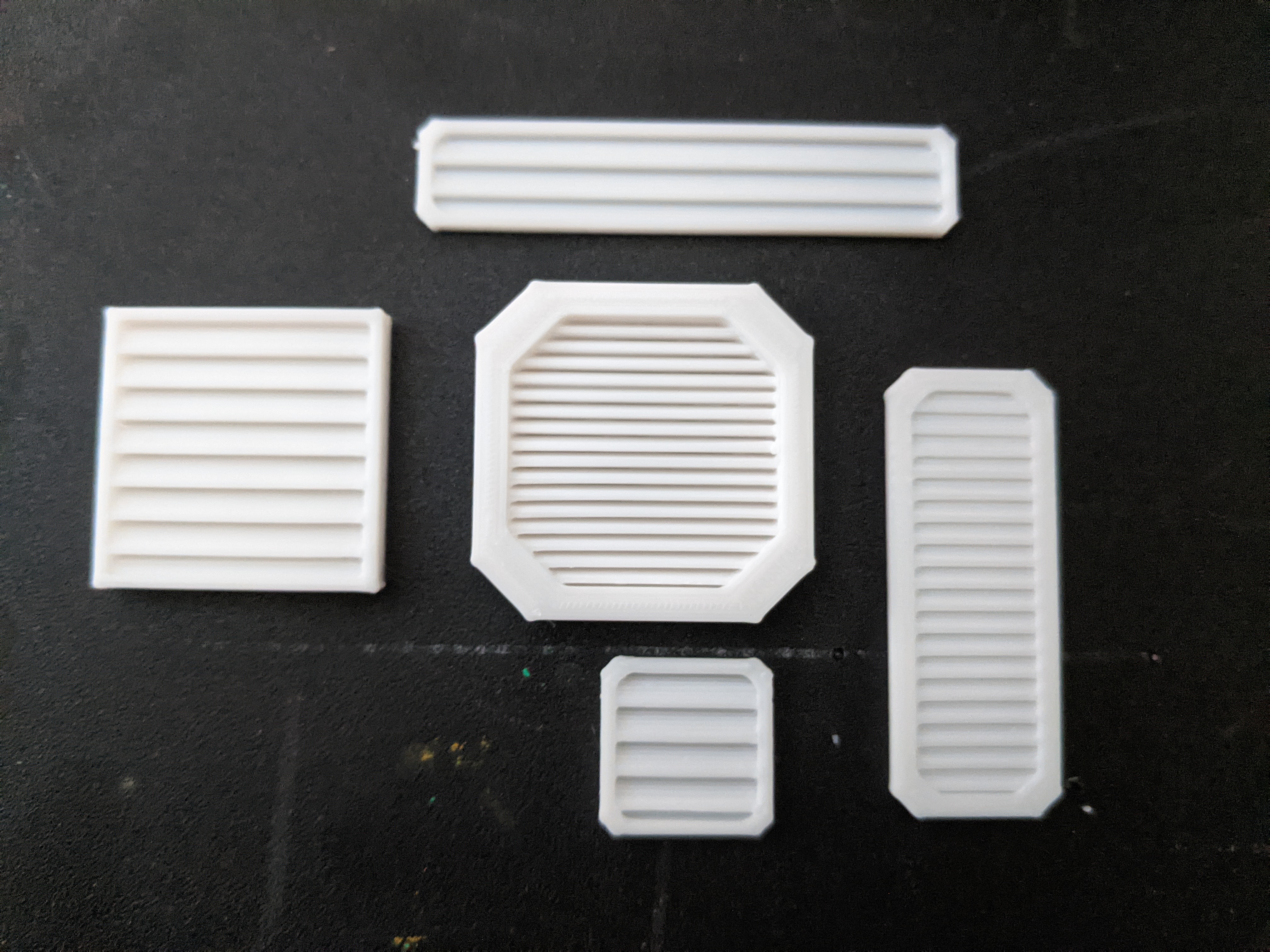 Năm mẫu vent khác nhau được tạo ra bằng cadquery và một thư viện tui viết tên là cqterrain.