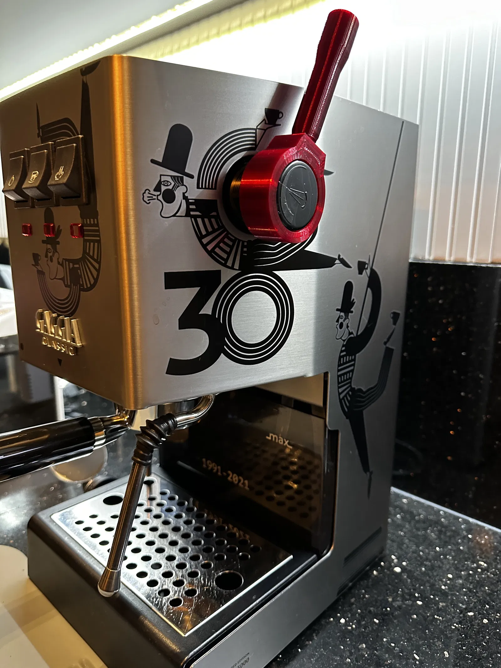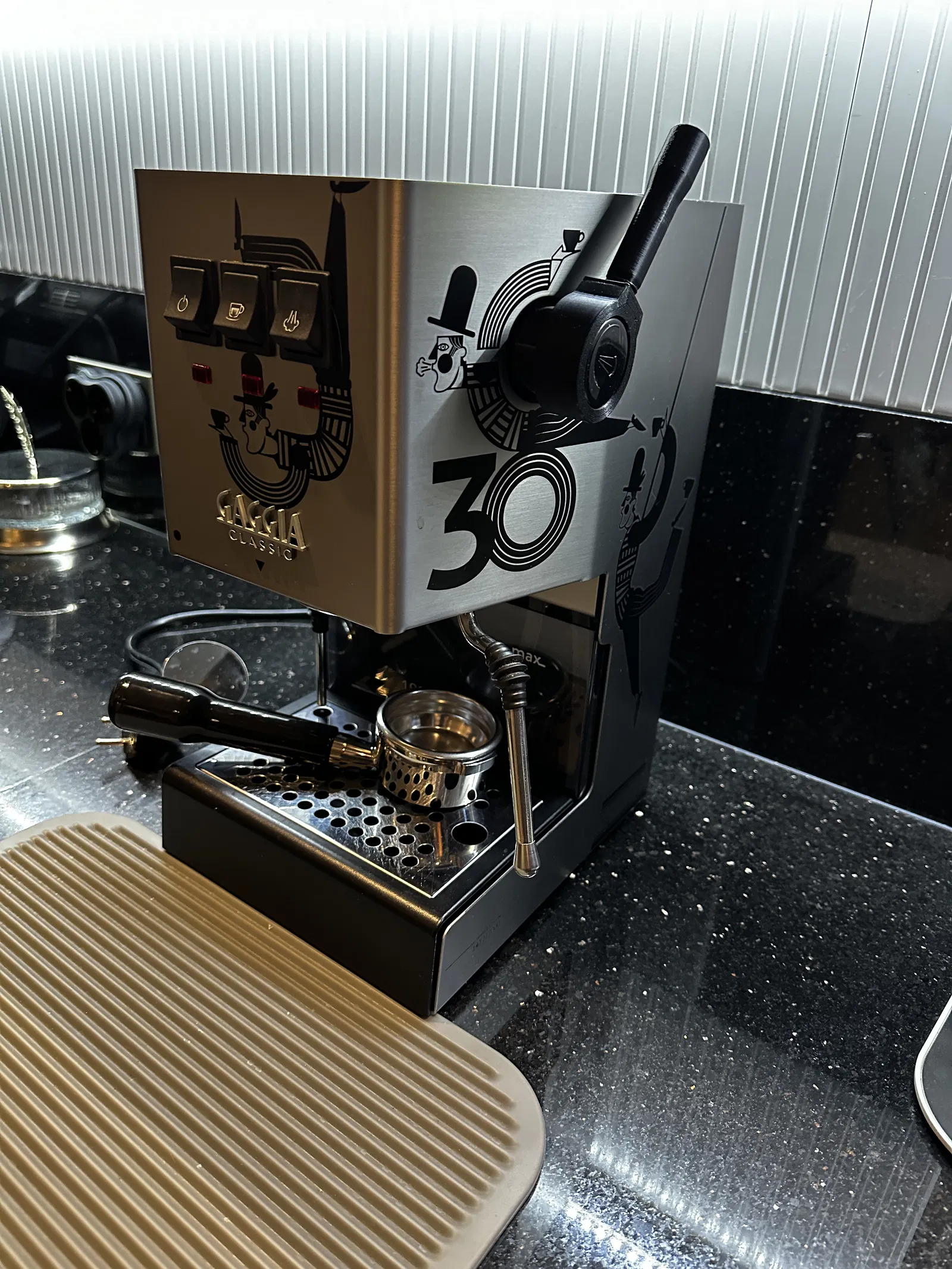 Adapter tay gạt cho máy pha cà phê Gaggia Classic Pro, chỉ cần gắn vào núm chỉnh hơi nước có sẵn mà không cần tháo rời. In bằng PETG để chịu nhiệt, mềm dẻo và không làm trầy núm. Có thể tùy chỉnh độ cứng cáp bằng số lớp vỏ.